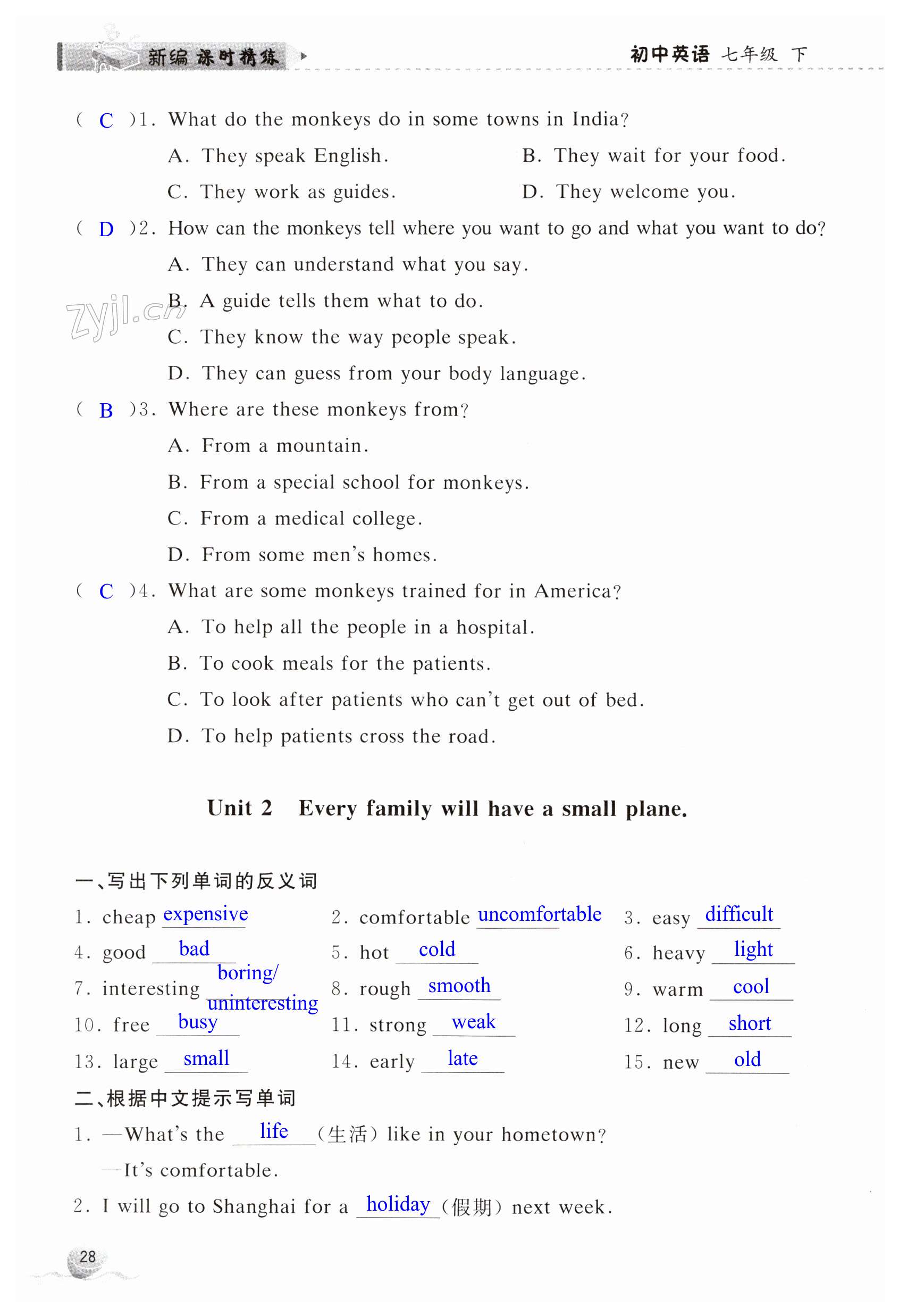 注:目前有些书本章节名称可能整理的还不是很完善,但都是按照顺序排列的,请同学们按照顺序仔细查找。练习册 2023年新编课时精练七年级英语下册外研版 答案主要是用来给同学们做完题方便对答案用的,请勿直接抄袭。