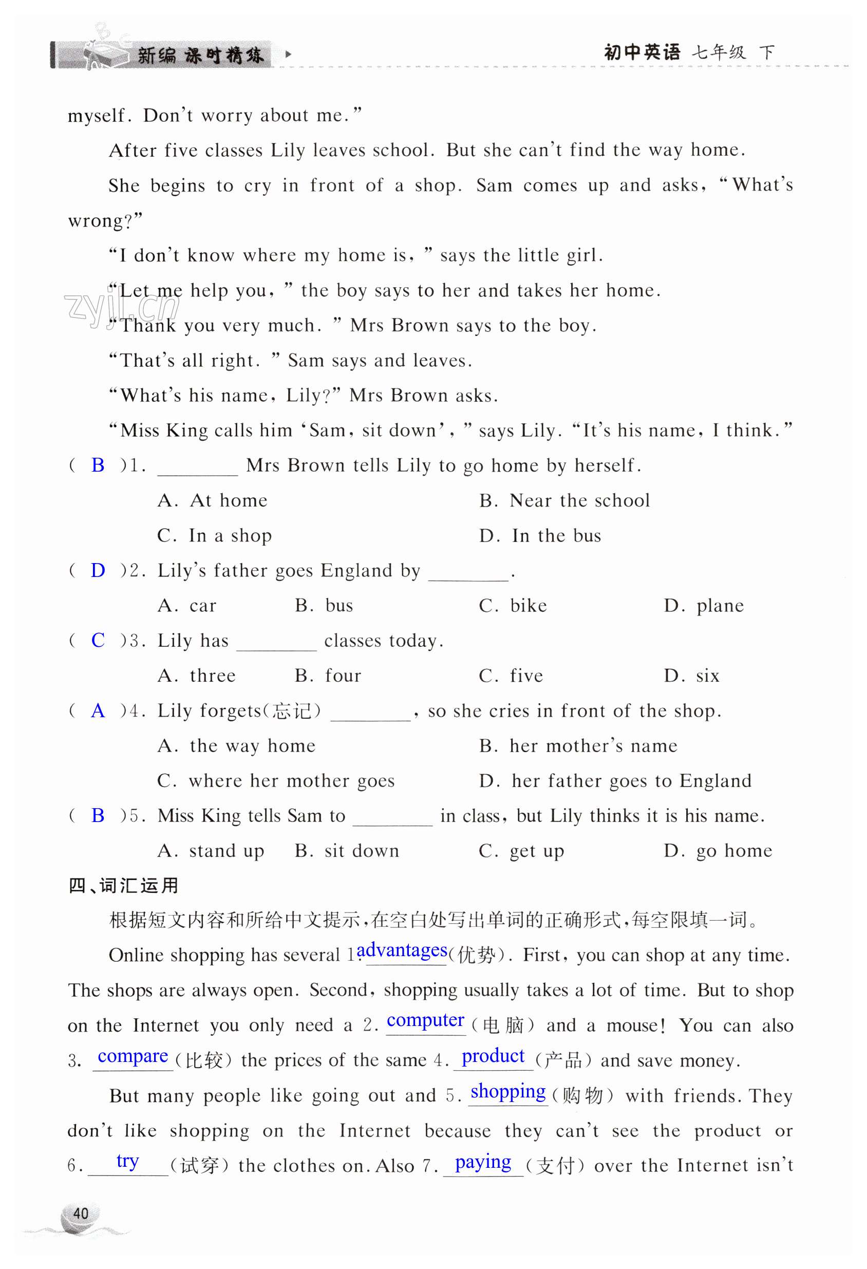 注:目前有些书本章节名称可能整理的还不是很完善,但都是按照顺序排列的,请同学们按照顺序仔细查找。练习册 2023年新编课时精练七年级英语下册外研版 答案主要是用来给同学们做完题方便对答案用的,请勿直接抄袭。
