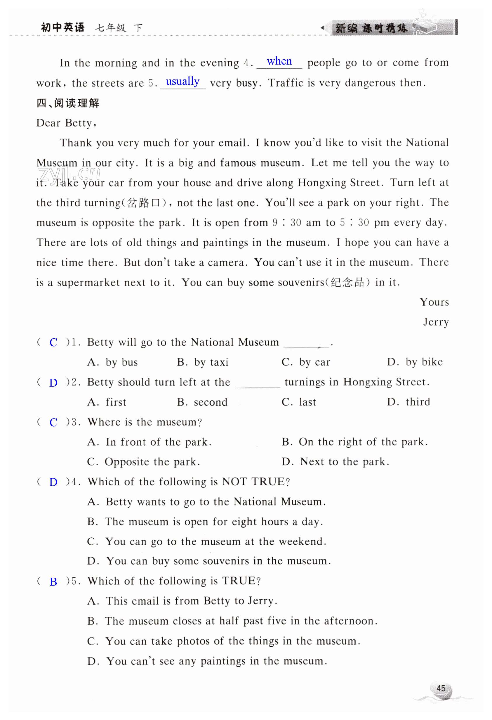 注:目前有些书本章节名称可能整理的还不是很完善,但都是按照顺序排列的,请同学们按照顺序仔细查找。练习册 2023年新编课时精练七年级英语下册外研版 答案主要是用来给同学们做完题方便对答案用的,请勿直接抄袭。