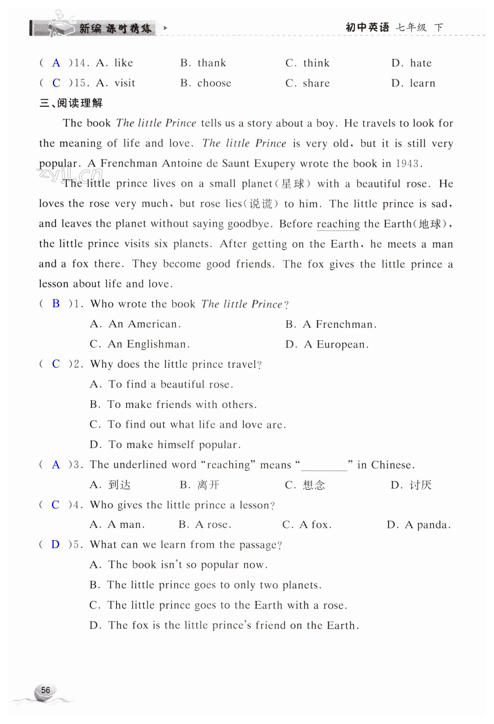 注:目前有些书本章节名称可能整理的还不是很完善,但都是按照顺序排列的,请同学们按照顺序仔细查找。练习册 2023年新编课时精练七年级英语下册外研版 答案主要是用来给同学们做完题方便对答案用的,请勿直接抄袭。