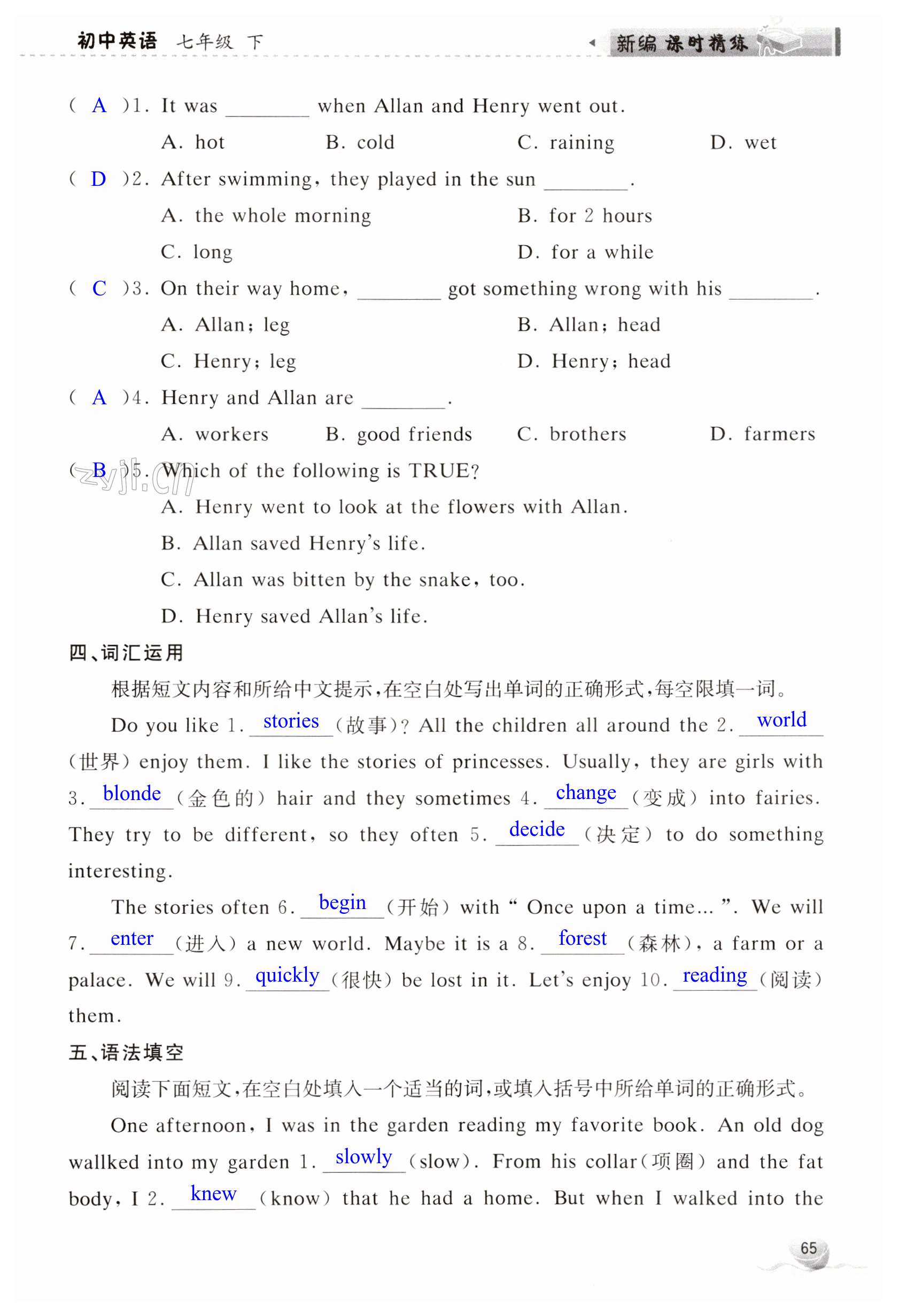 注:目前有些书本章节名称可能整理的还不是很完善,但都是按照顺序排列的,请同学们按照顺序仔细查找。练习册 2023年新编课时精练七年级英语下册外研版 答案主要是用来给同学们做完题方便对答案用的,请勿直接抄袭。