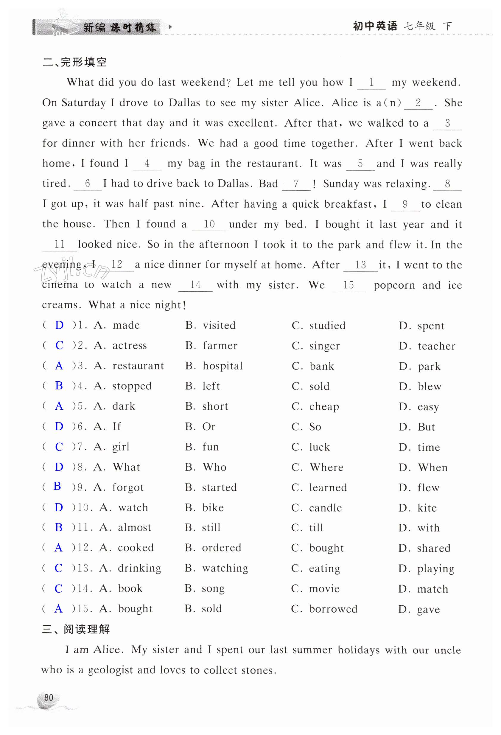 注:目前有些书本章节名称可能整理的还不是很完善,但都是按照顺序排列的,请同学们按照顺序仔细查找。练习册 2023年新编课时精练七年级英语下册外研版 答案主要是用来给同学们做完题方便对答案用的,请勿直接抄袭。