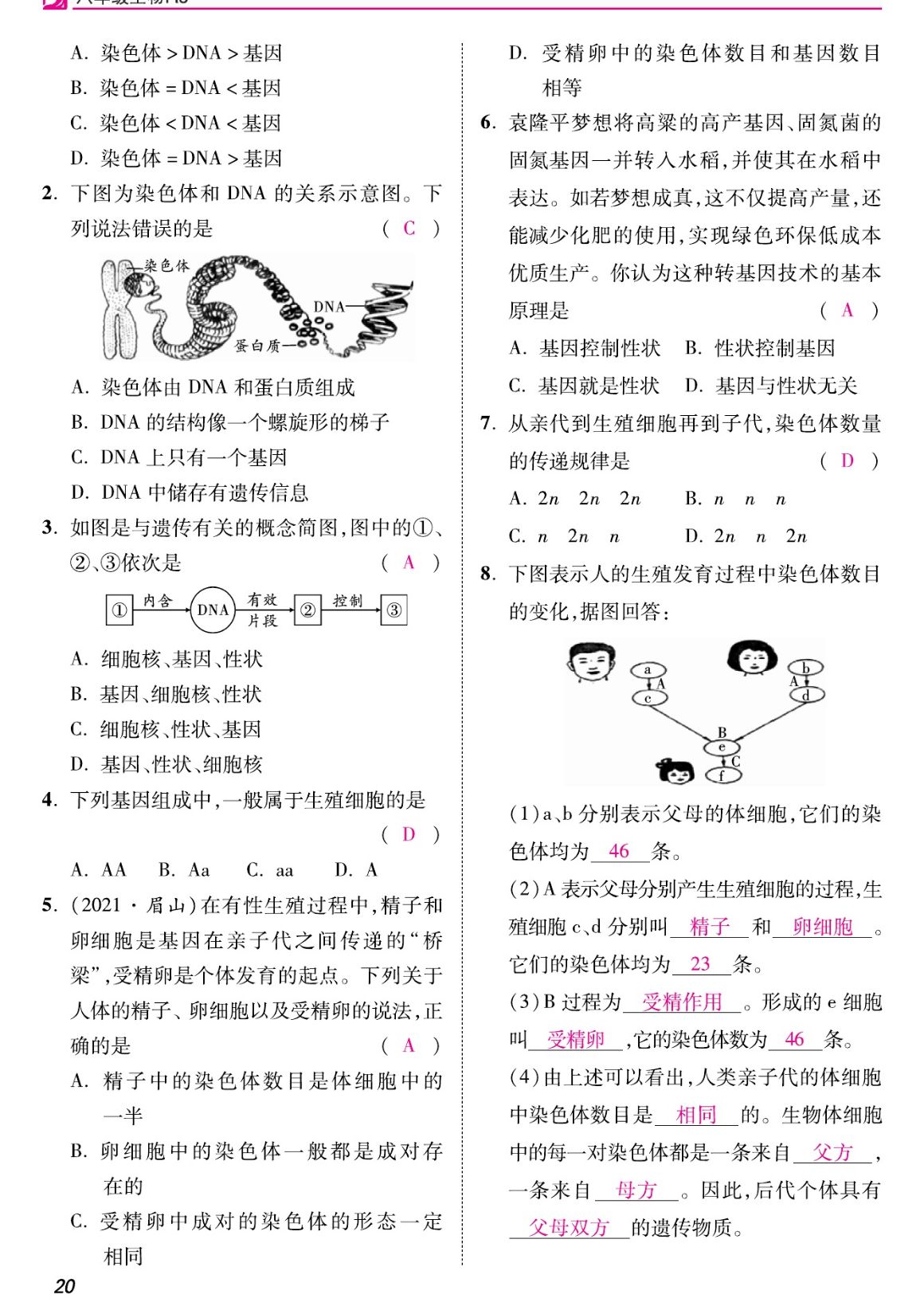 注:目前有些书本章节名称可能整理的还不是很完善,但都是按照顺序排列的,请同学们按照顺序仔细查找。练习册 2023年我的作业八年级生物下册人教版 答案主要是用来给同学们做完题方便对答案用的,请勿直接抄袭。