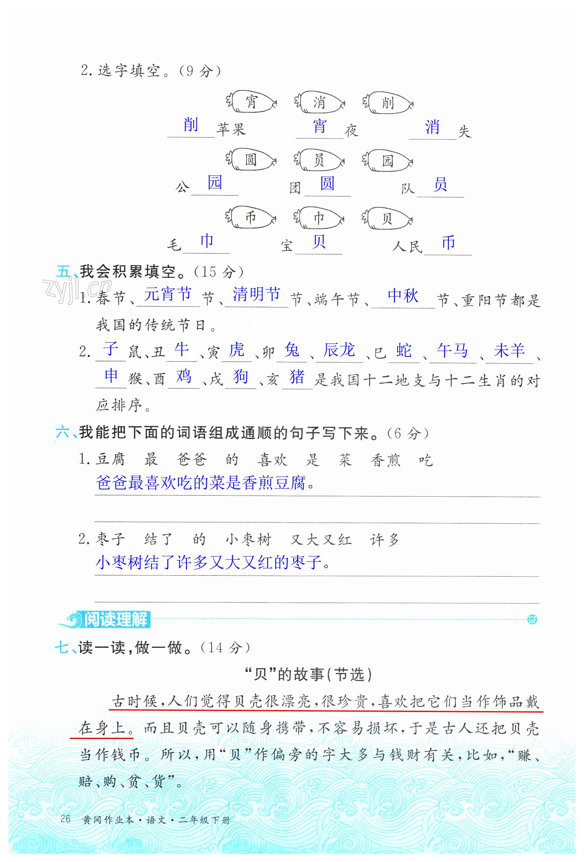 注:目前有些书本章节名称可能整理的还不是很完善,但都是按照顺序排列的,请同学们按照顺序仔细查找。练习册 2023年黄冈作业本武汉大学出版社二年级语文下册人教版 答案主要是用来给同学们做完题方便对答案用的,请勿直接抄袭。