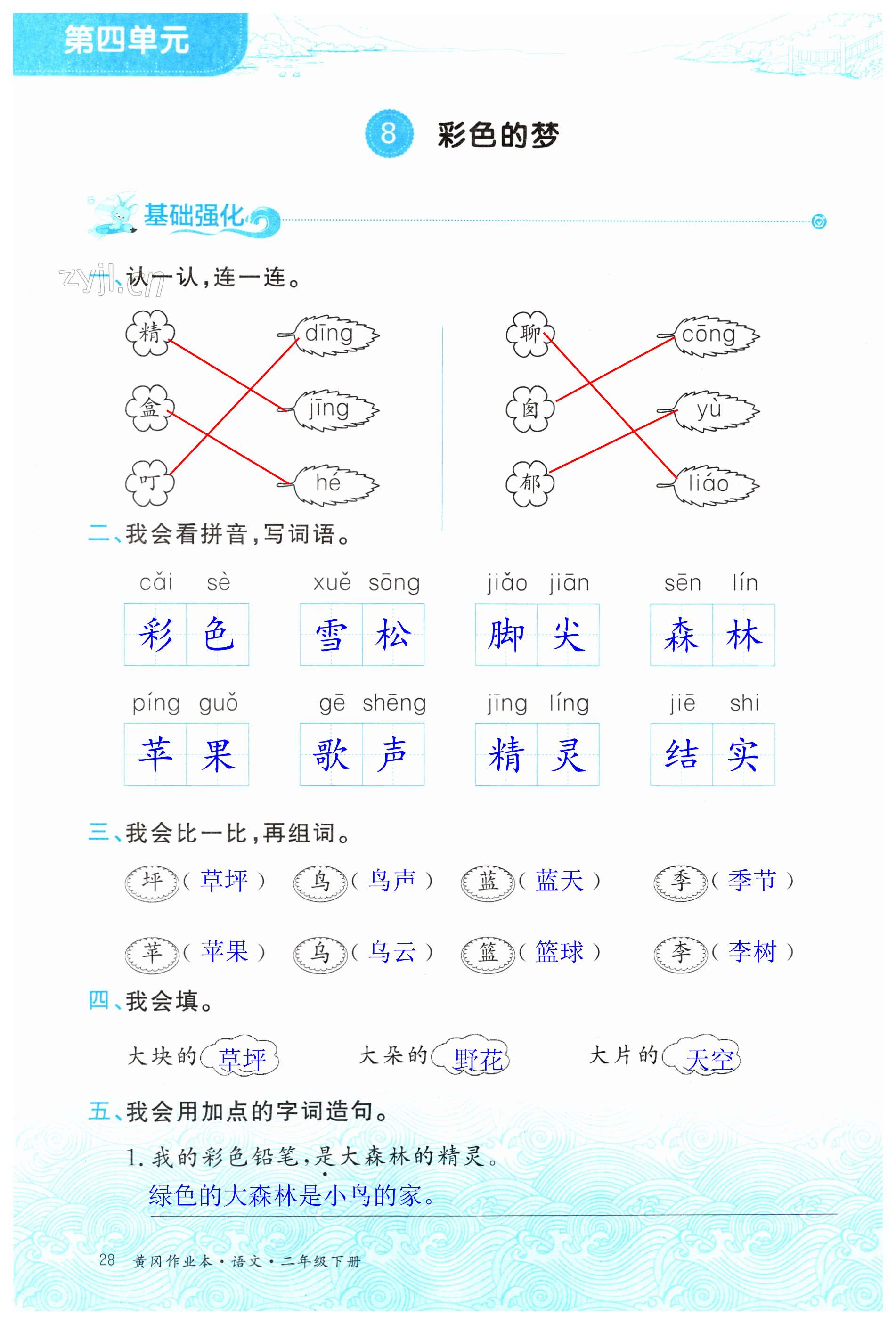 2023年黄冈作业本武汉大学出版社二年级语文下册人教版