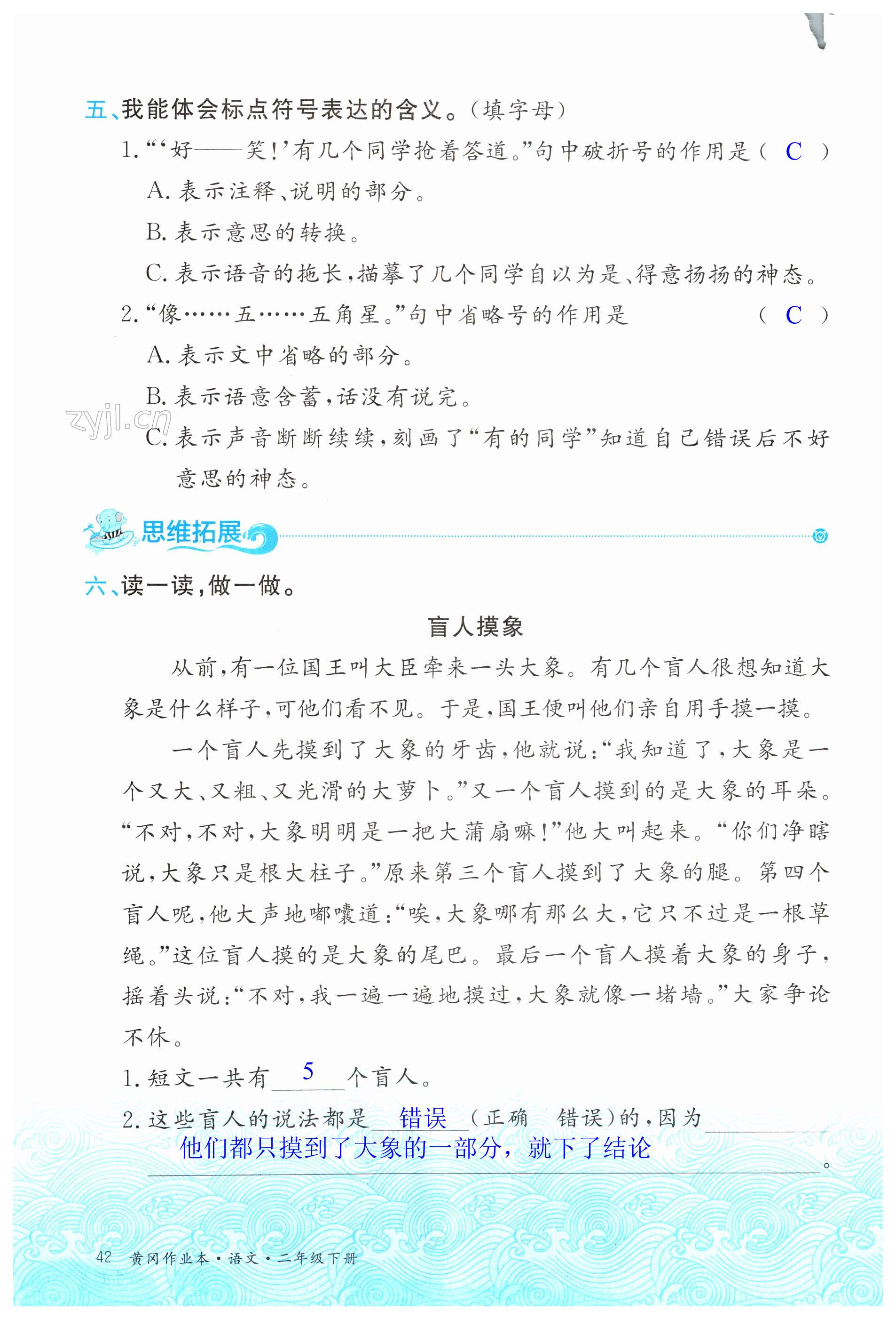 注:目前有些书本章节名称可能整理的还不是很完善,但都是按照顺序排列的,请同学们按照顺序仔细查找。练习册 2023年黄冈作业本武汉大学出版社二年级语文下册人教版 答案主要是用来给同学们做完题方便对答案用的,请勿直接抄袭。