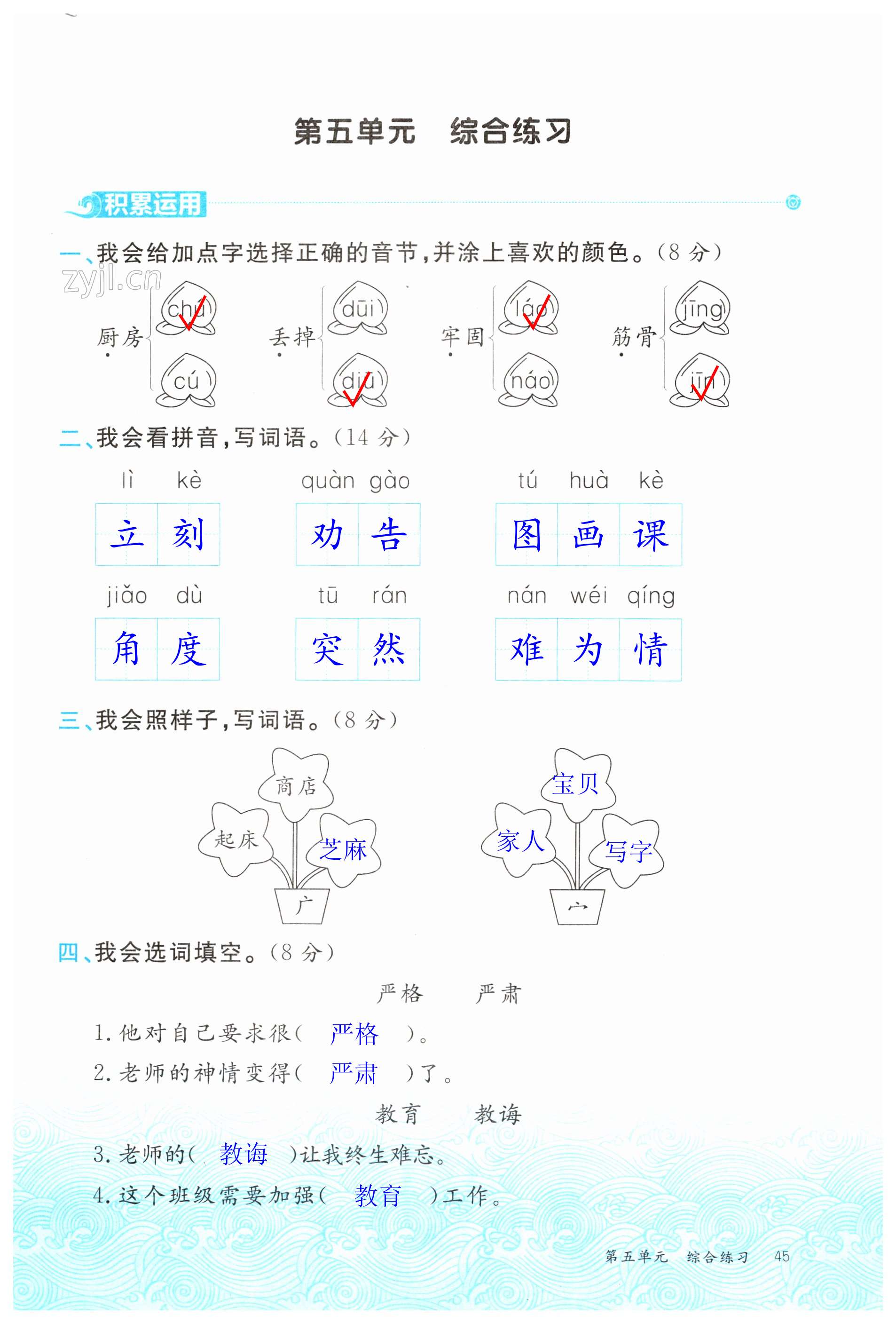 注:目前有些书本章节名称可能整理的还不是很完善,但都是按照顺序排列的,请同学们按照顺序仔细查找。练习册 2023年黄冈作业本武汉大学出版社二年级语文下册人教版 答案主要是用来给同学们做完题方便对答案用的,请勿直接抄袭。