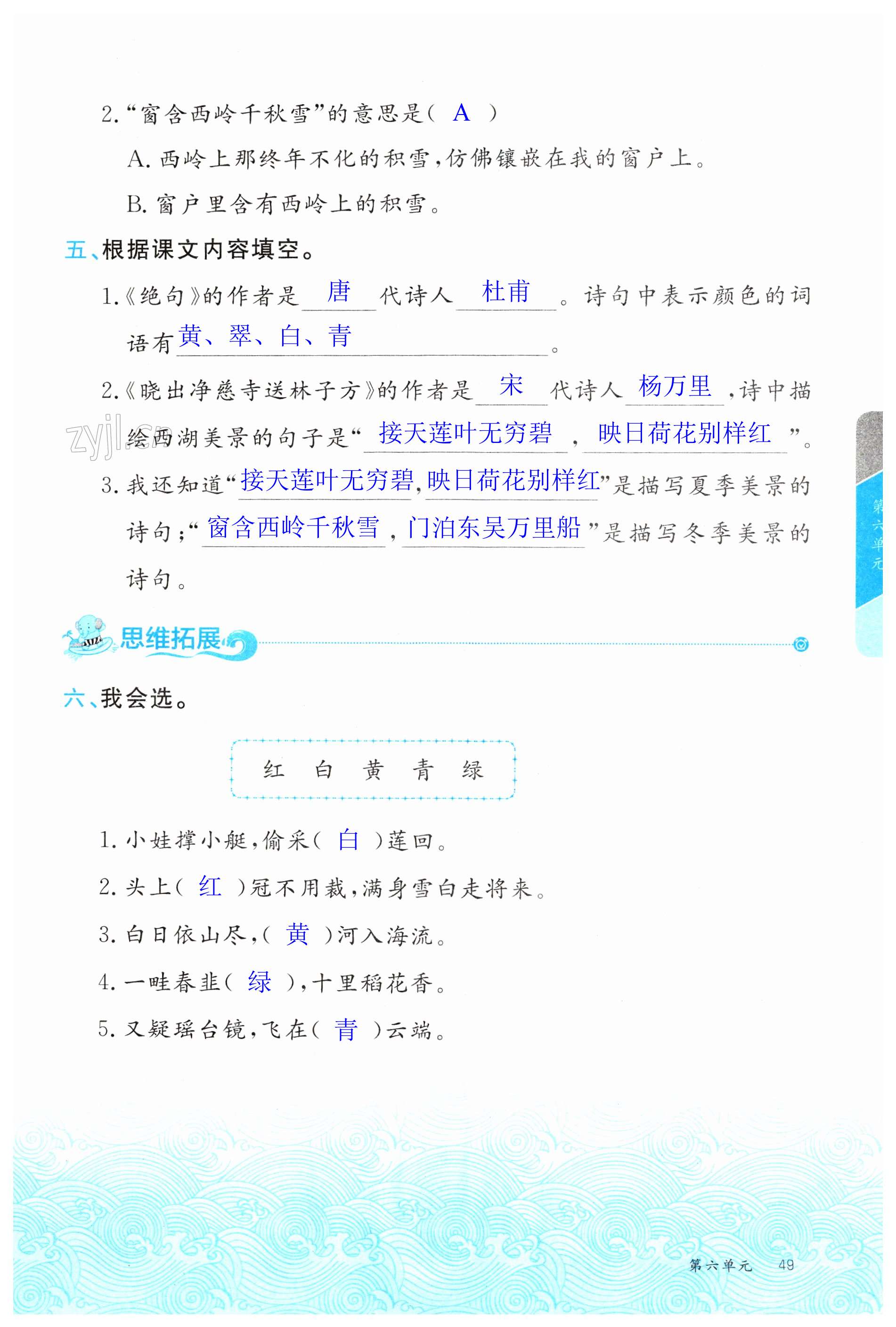 注:目前有些书本章节名称可能整理的还不是很完善,但都是按照顺序排列的,请同学们按照顺序仔细查找。练习册 2023年黄冈作业本武汉大学出版社二年级语文下册人教版 答案主要是用来给同学们做完题方便对答案用的,请勿直接抄袭。
