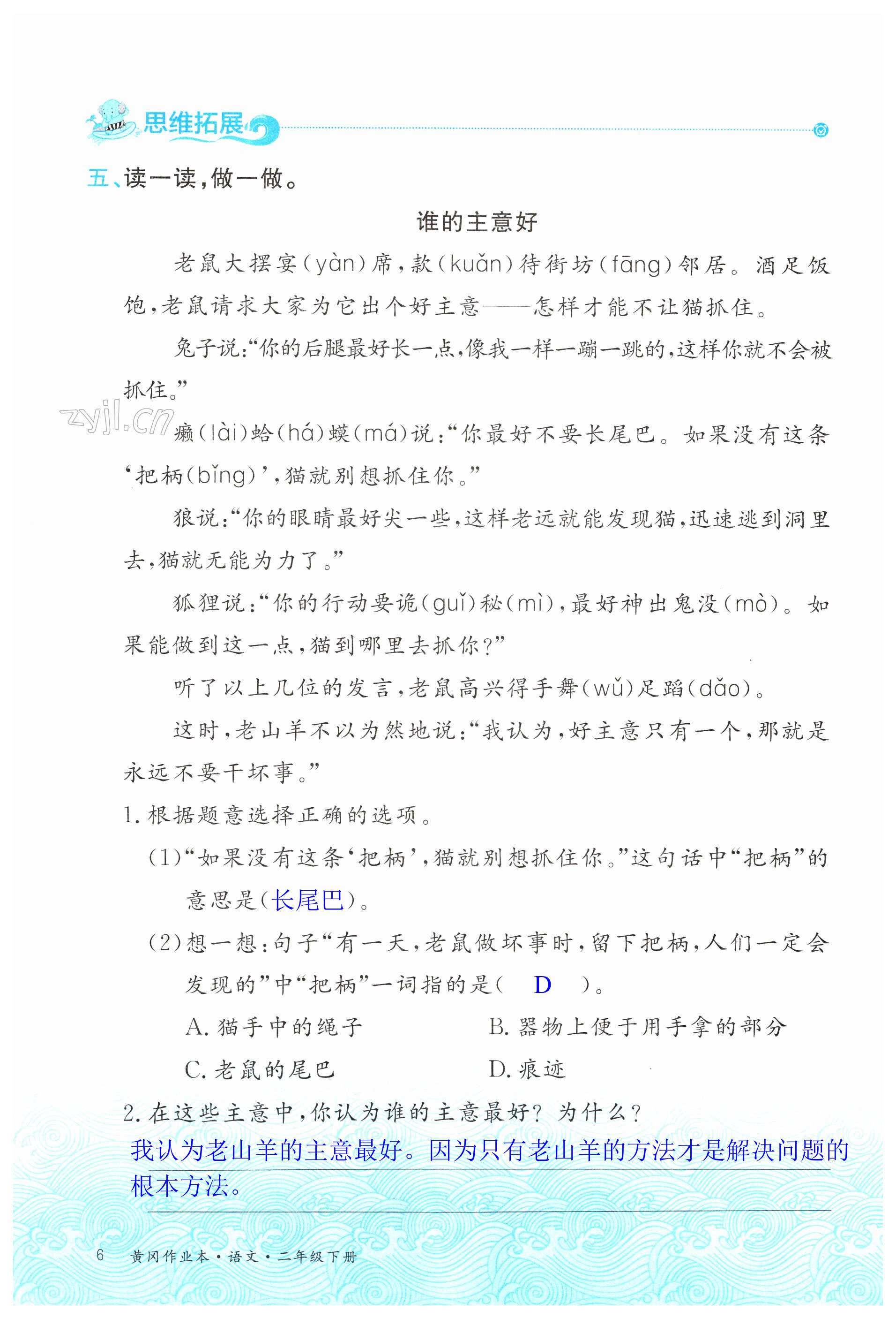 注:目前有些书本章节名称可能整理的还不是很完善,但都是按照顺序排列的,请同学们按照顺序仔细查找。练习册 2023年黄冈作业本武汉大学出版社二年级语文下册人教版 答案主要是用来给同学们做完题方便对答案用的,请勿直接抄袭。