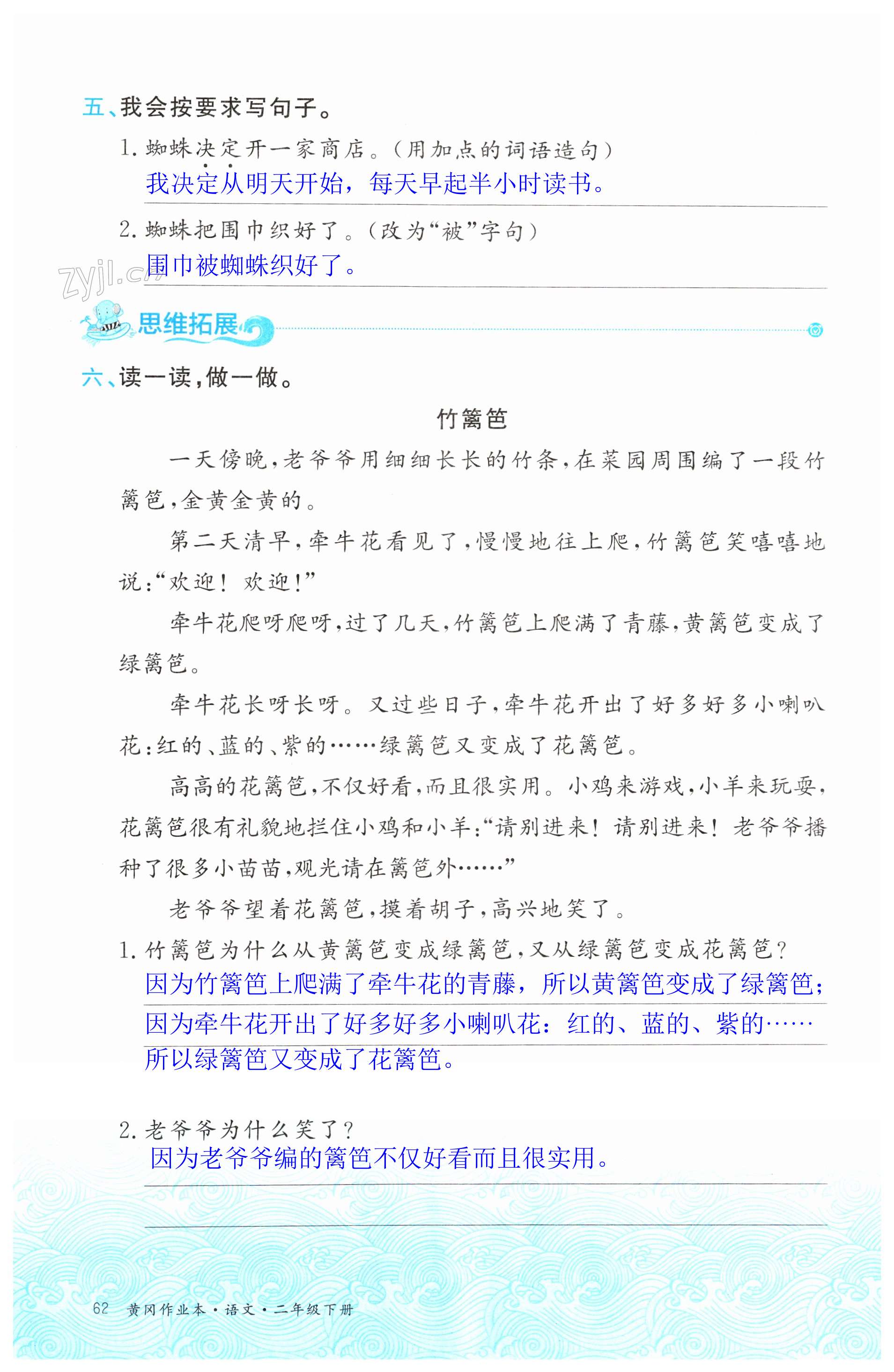 注:目前有些书本章节名称可能整理的还不是很完善,但都是按照顺序排列的,请同学们按照顺序仔细查找。练习册 2023年黄冈作业本武汉大学出版社二年级语文下册人教版 答案主要是用来给同学们做完题方便对答案用的,请勿直接抄袭。