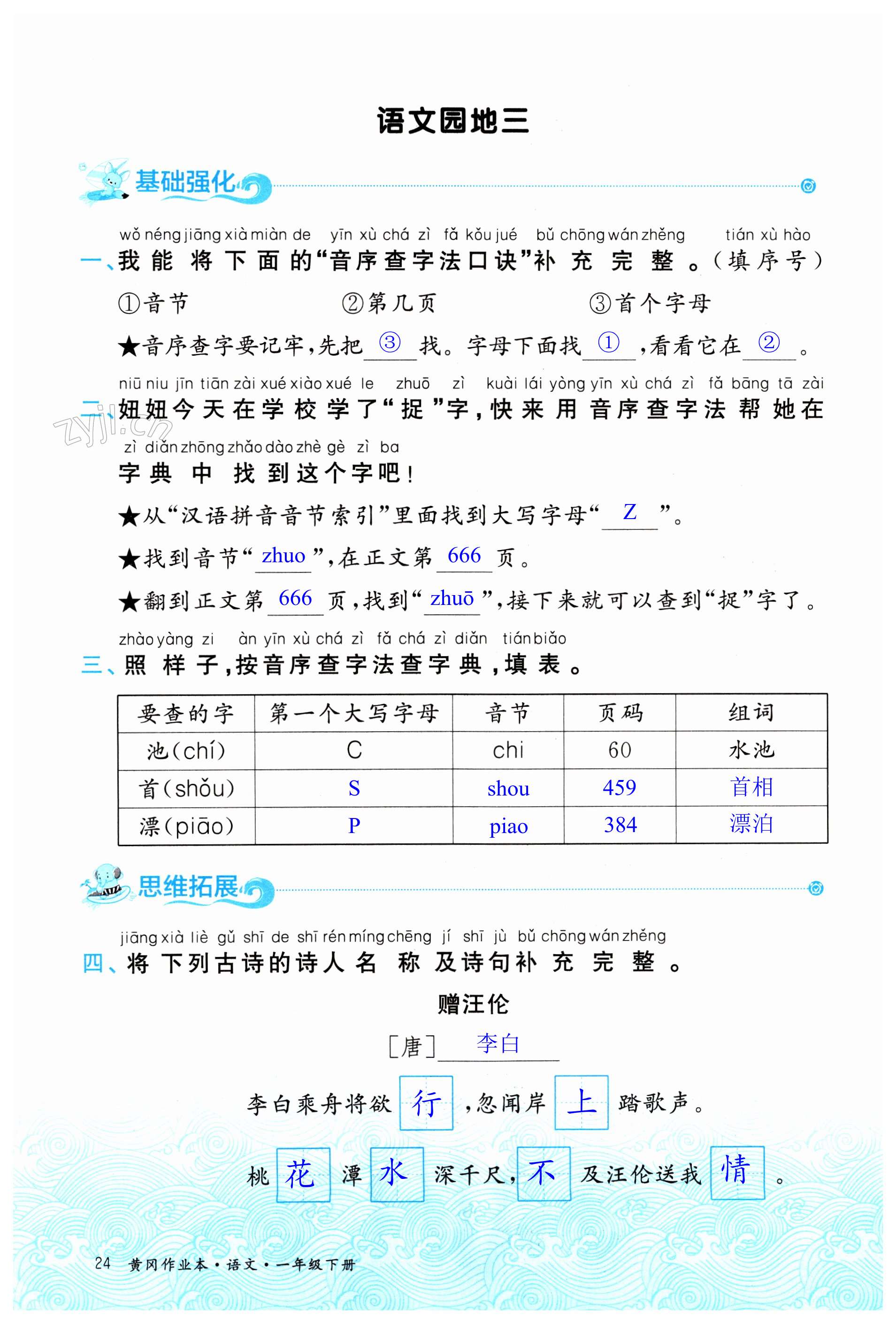 注:目前有些书本章节名称可能整理的还不是很完善,但都是按照顺序排列的,请同学们按照顺序仔细查找。练习册 2023年黄冈作业本武汉大学出版社一年级语文下册人教版 答案主要是用来给同学们做完题方便对答案用的,请勿直接抄袭。