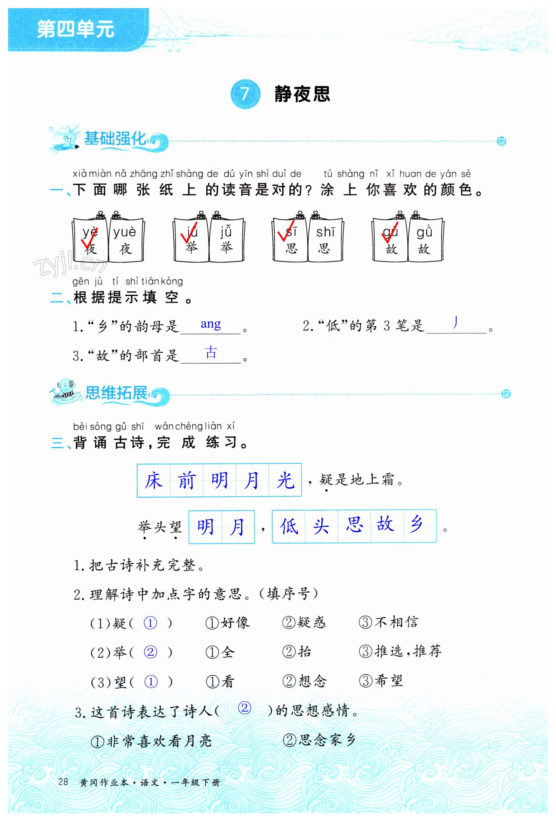 注:目前有些书本章节名称可能整理的还不是很完善,但都是按照顺序排列的,请同学们按照顺序仔细查找。练习册 2023年黄冈作业本武汉大学出版社一年级语文下册人教版 答案主要是用来给同学们做完题方便对答案用的,请勿直接抄袭。