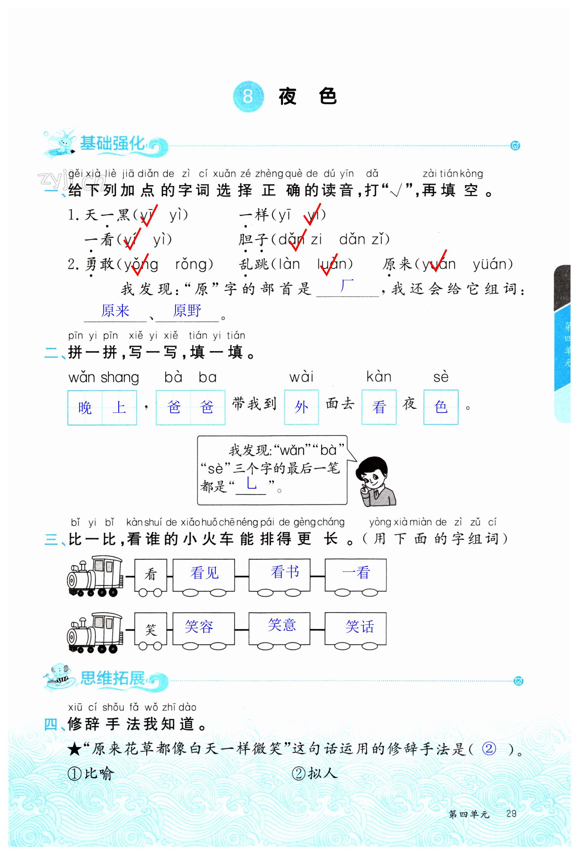 注:目前有些书本章节名称可能整理的还不是很完善,但都是按照顺序排列的,请同学们按照顺序仔细查找。练习册 2023年黄冈作业本武汉大学出版社一年级语文下册人教版 答案主要是用来给同学们做完题方便对答案用的,请勿直接抄袭。