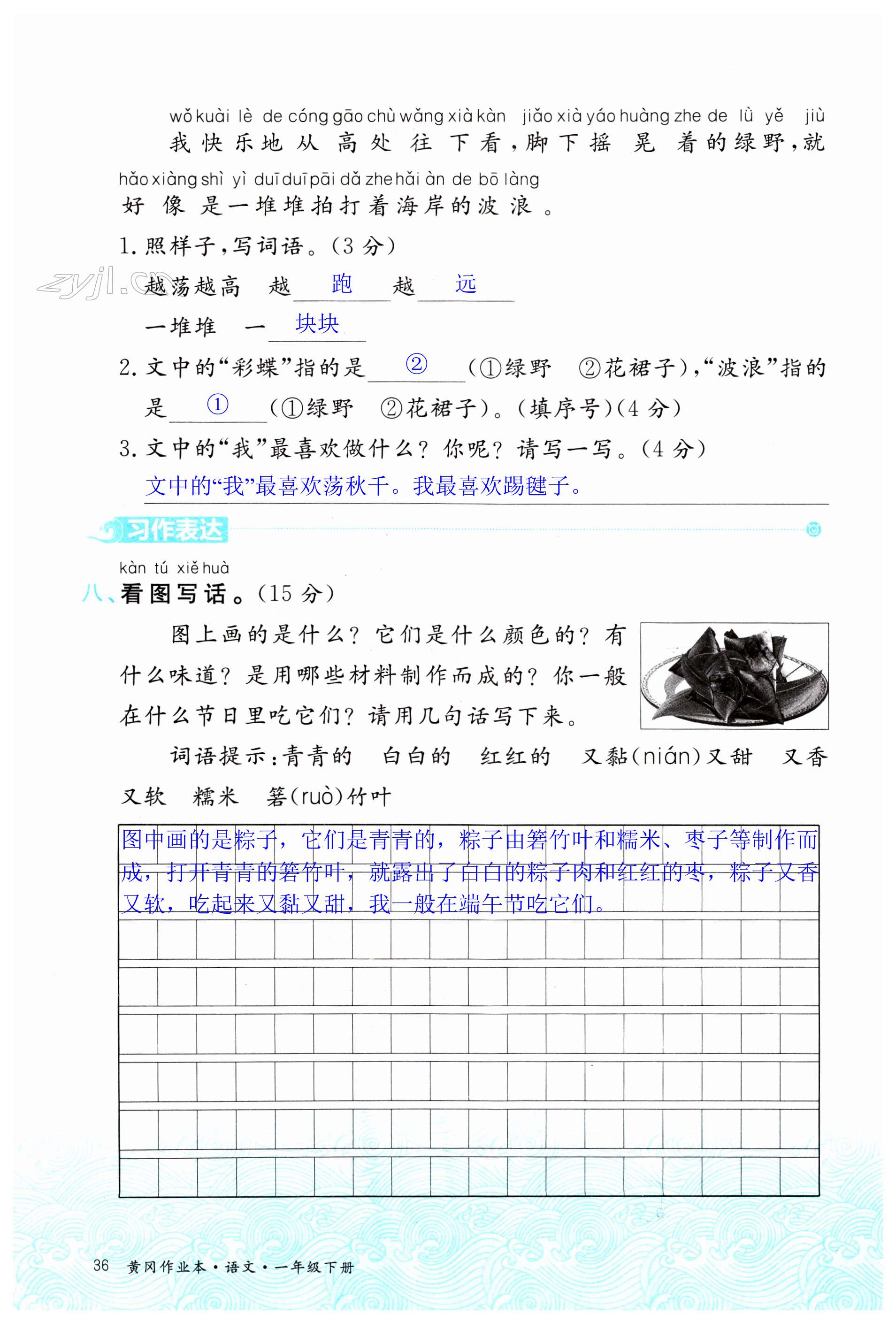 注:目前有些书本章节名称可能整理的还不是很完善,但都是按照顺序排列的,请同学们按照顺序仔细查找。练习册 2023年黄冈作业本武汉大学出版社一年级语文下册人教版 答案主要是用来给同学们做完题方便对答案用的,请勿直接抄袭。