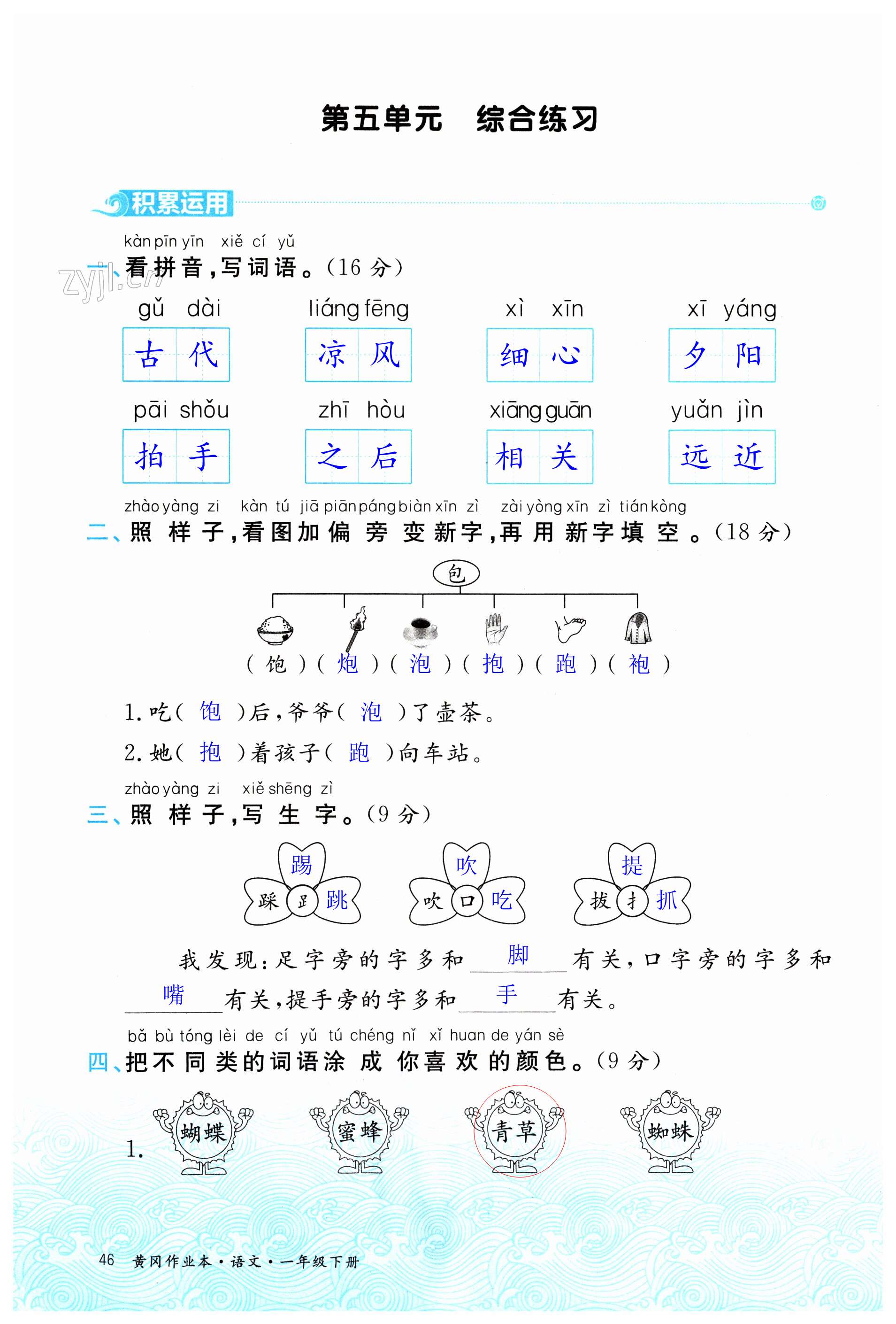 注:目前有些书本章节名称可能整理的还不是很完善,但都是按照顺序排列的,请同学们按照顺序仔细查找。练习册 2023年黄冈作业本武汉大学出版社一年级语文下册人教版 答案主要是用来给同学们做完题方便对答案用的,请勿直接抄袭。
