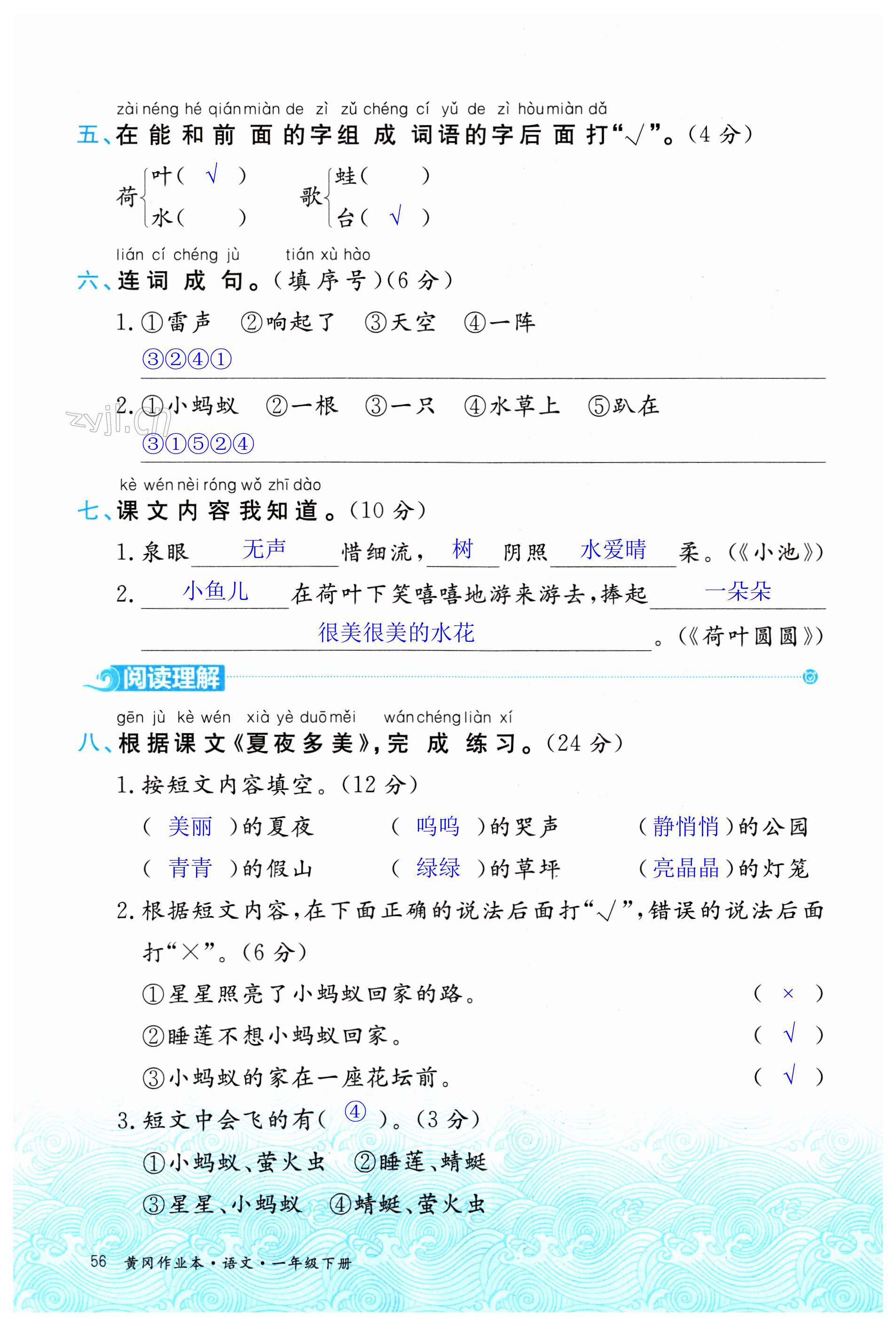 注:目前有些书本章节名称可能整理的还不是很完善,但都是按照顺序排列的,请同学们按照顺序仔细查找。练习册 2023年黄冈作业本武汉大学出版社一年级语文下册人教版 答案主要是用来给同学们做完题方便对答案用的,请勿直接抄袭。
