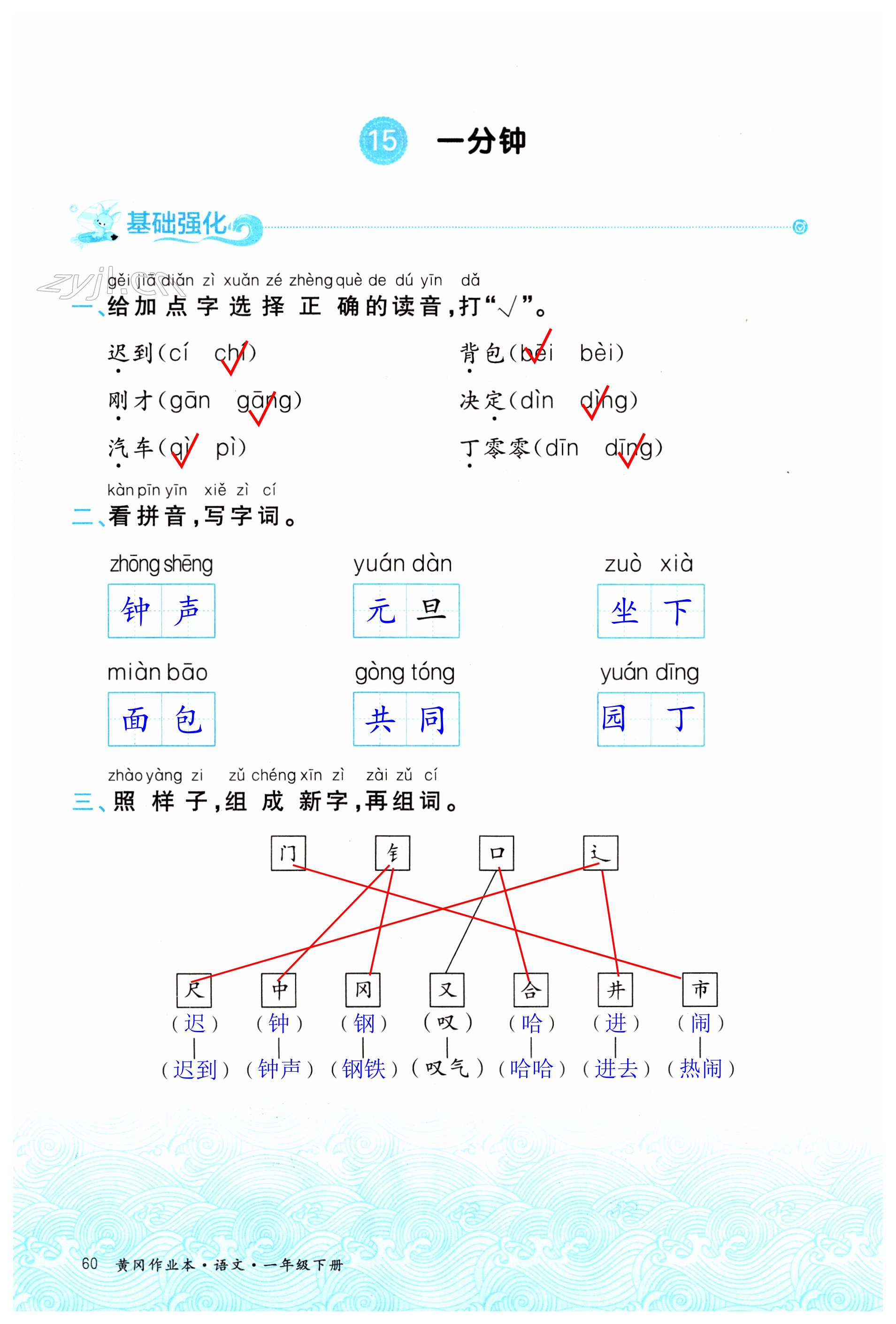 注:目前有些书本章节名称可能整理的还不是很完善,但都是按照顺序排列的,请同学们按照顺序仔细查找。练习册 2023年黄冈作业本武汉大学出版社一年级语文下册人教版 答案主要是用来给同学们做完题方便对答案用的,请勿直接抄袭。