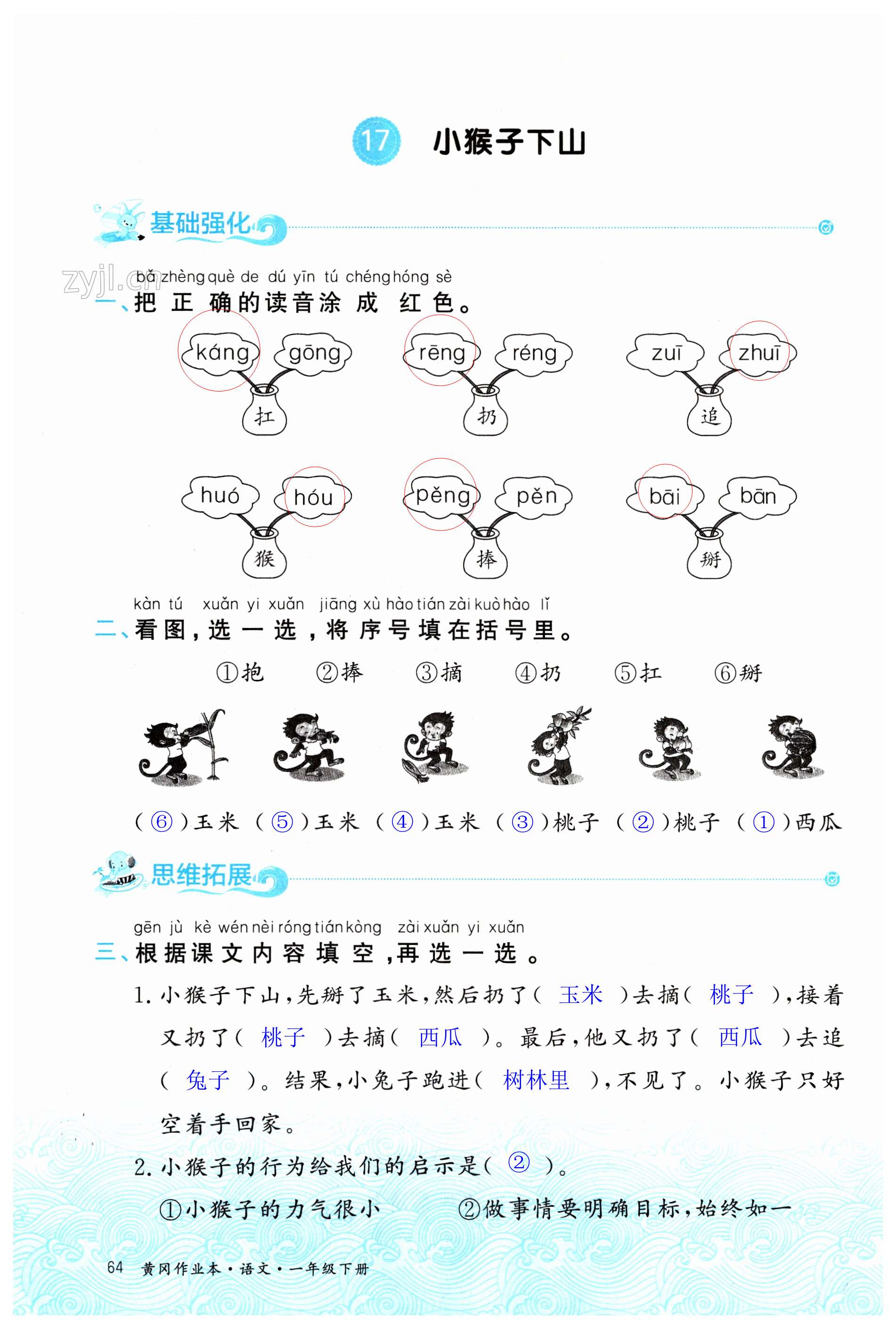 注:目前有些书本章节名称可能整理的还不是很完善,但都是按照顺序排列的,请同学们按照顺序仔细查找。练习册 2023年黄冈作业本武汉大学出版社一年级语文下册人教版 答案主要是用来给同学们做完题方便对答案用的,请勿直接抄袭。