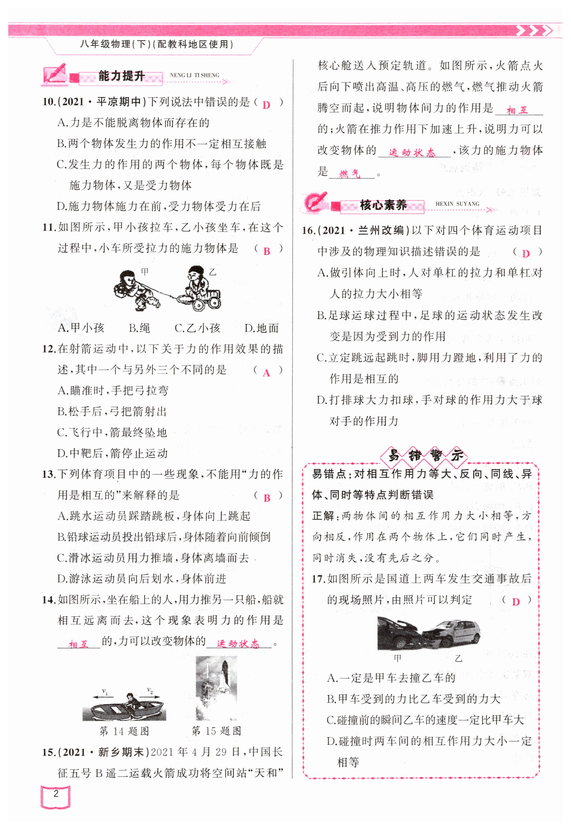 注:目前有些书本章节名称可能整理的还不是很完善,但都是按照顺序排列的,请同学们按照顺序仔细查找。练习册 2023年原创新课堂八年级物理下册教科版四川专版 答案主要是用来给同学们做完题方便对答案用的,请勿直接抄袭。