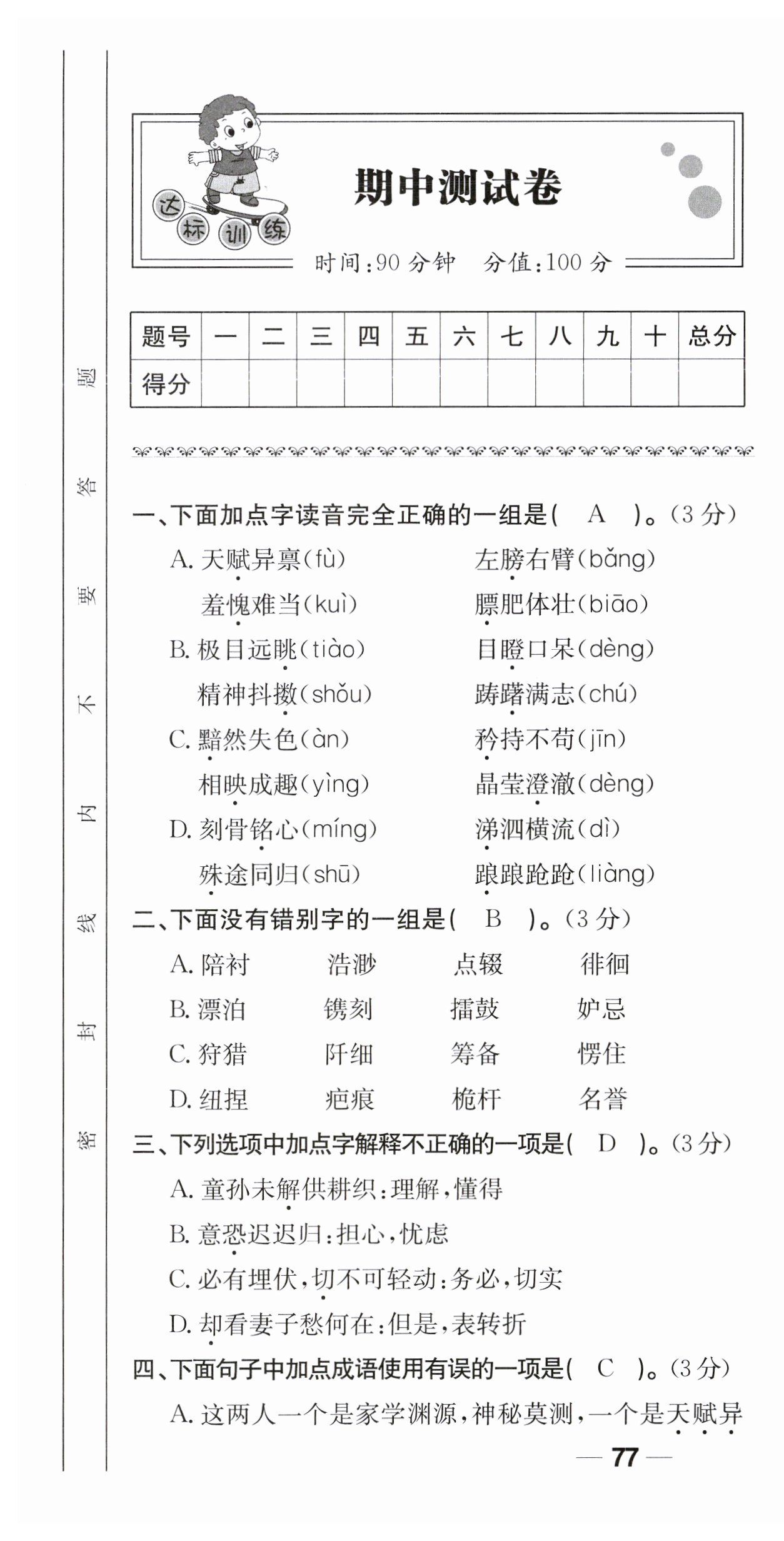注:目前有些书本章节名称可能整理的还不是很完善,但都是按照顺序排列的,请同学们按照顺序仔细查找。练习册 2023年全优学习达标训练五年级语文下册人教版 答案主要是用来给同学们做完题方便对答案用的,请勿直接抄袭。