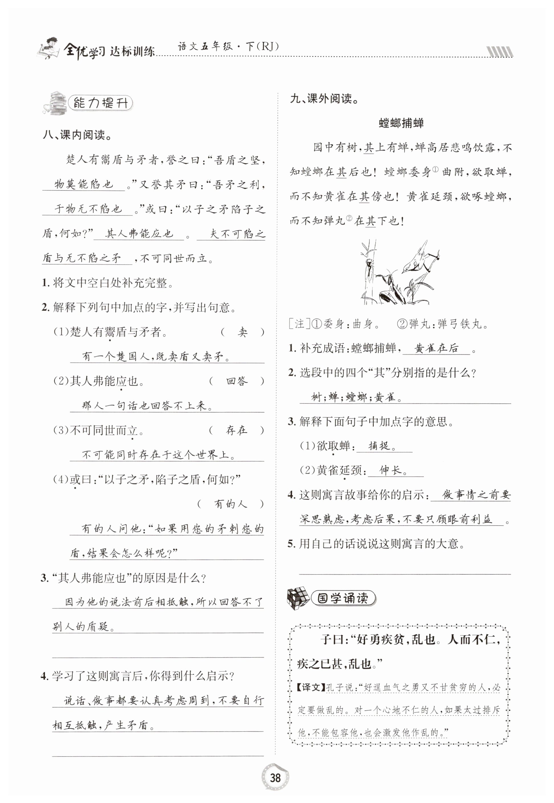注:目前有些书本章节名称可能整理的还不是很完善,但都是按照顺序排列的,请同学们按照顺序仔细查找。练习册 2023年全优学习达标训练五年级语文下册人教版 答案主要是用来给同学们做完题方便对答案用的,请勿直接抄袭。