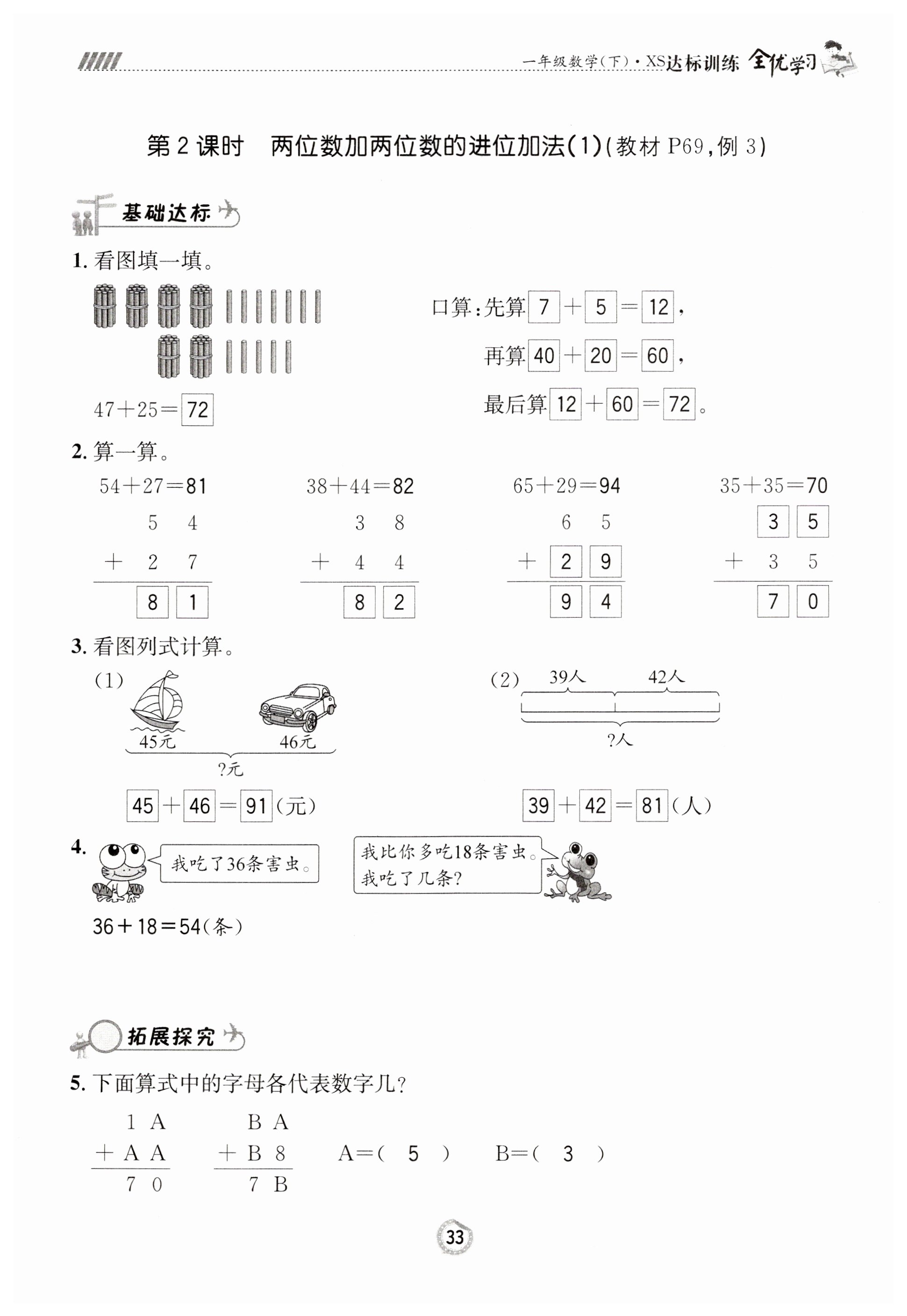 注:目前有些书本章节名称可能整理的还不是很完善,但都是按照顺序排列的,请同学们按照顺序仔细查找。练习册 2023年全优学习达标训练一年级数学下册西师大版 答案主要是用来给同学们做完题方便对答案用的,请勿直接抄袭。