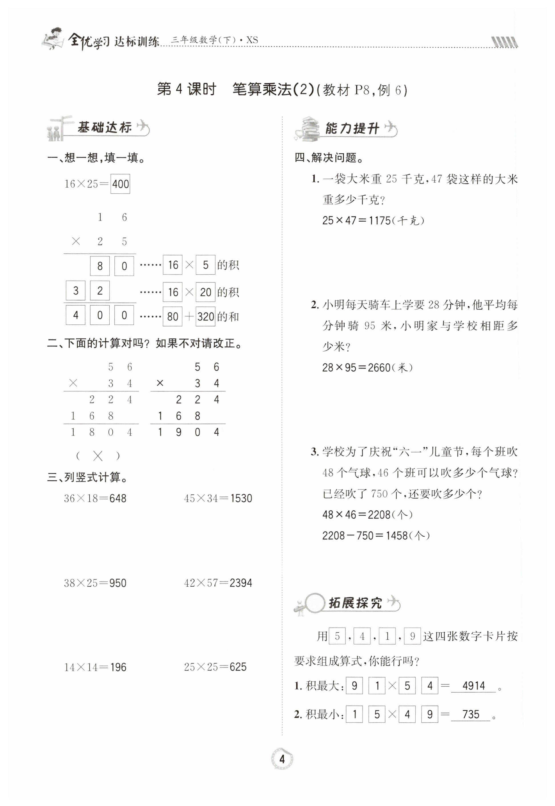 注:目前有些书本章节名称可能整理的还不是很完善,但都是按照顺序排列的,请同学们按照顺序仔细查找。练习册 2023年全优学习达标训练三年级数学下册西师大版 答案主要是用来给同学们做完题方便对答案用的,请勿直接抄袭。