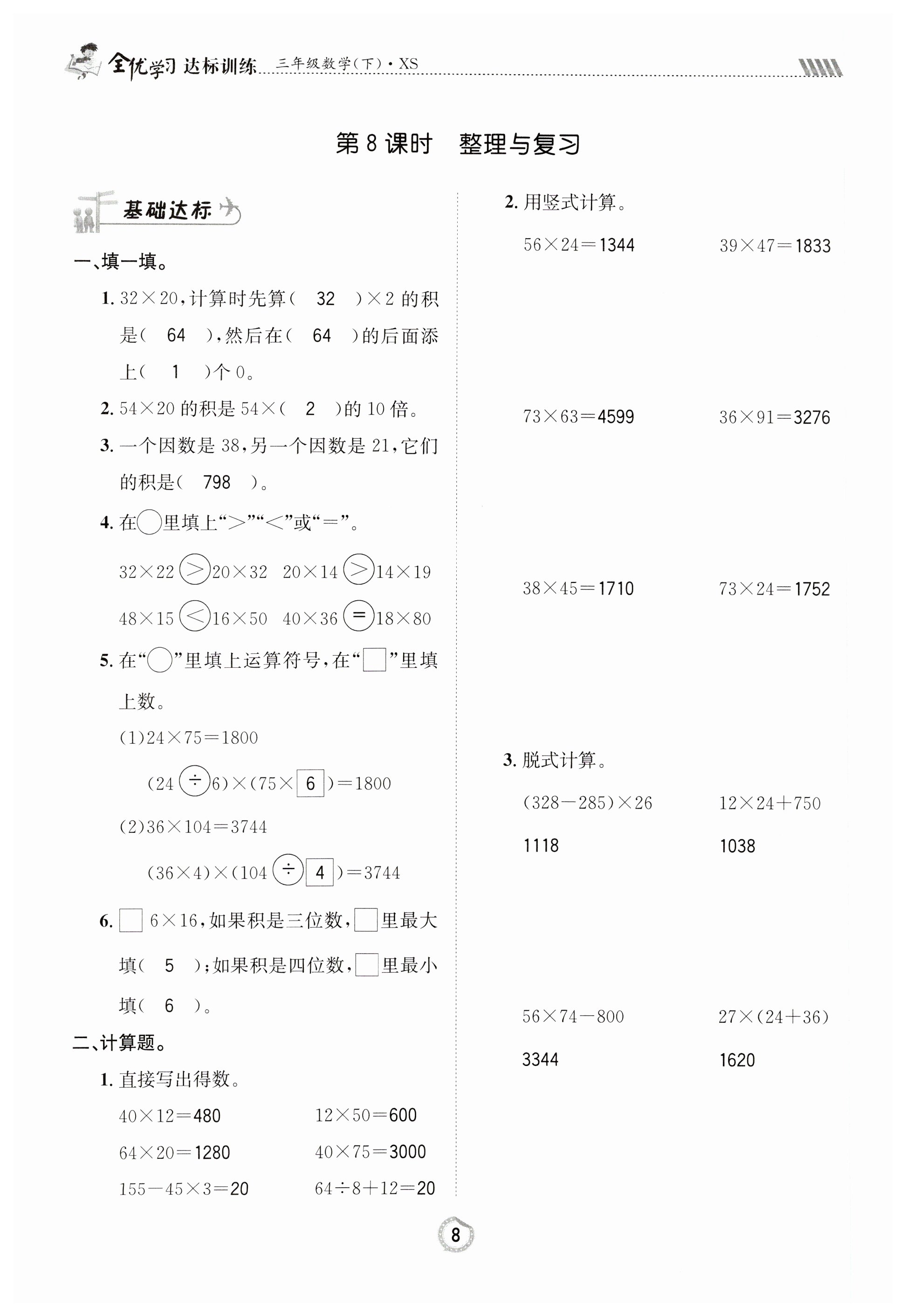 注:目前有些书本章节名称可能整理的还不是很完善,但都是按照顺序排列的,请同学们按照顺序仔细查找。练习册 2023年全优学习达标训练三年级数学下册西师大版 答案主要是用来给同学们做完题方便对答案用的,请勿直接抄袭。