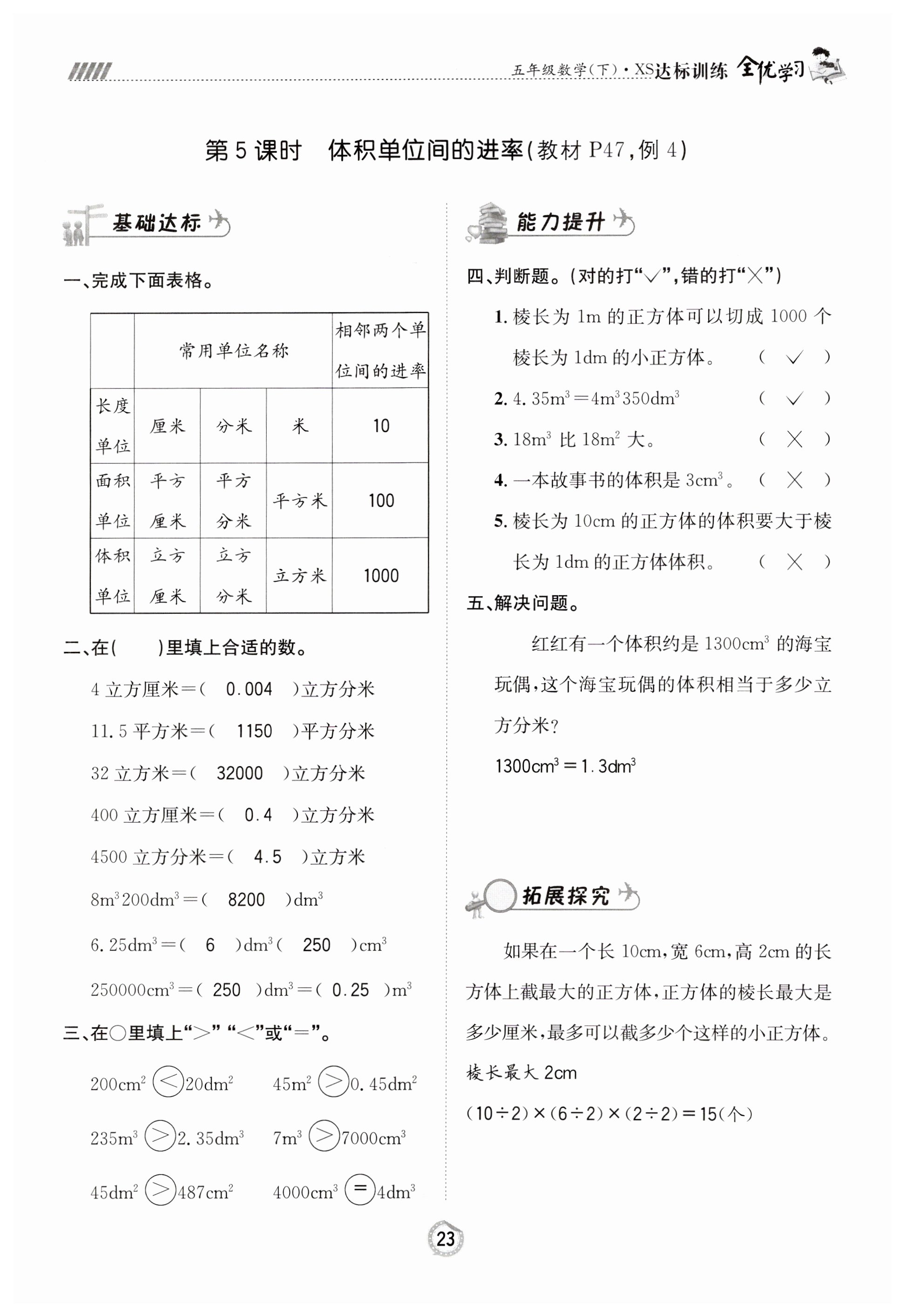 注:目前有些书本章节名称可能整理的还不是很完善,但都是按照顺序排列的,请同学们按照顺序仔细查找。练习册 2023年全优学习达标训练五年级数学下册西师大版 答案主要是用来给同学们做完题方便对答案用的,请勿直接抄袭。