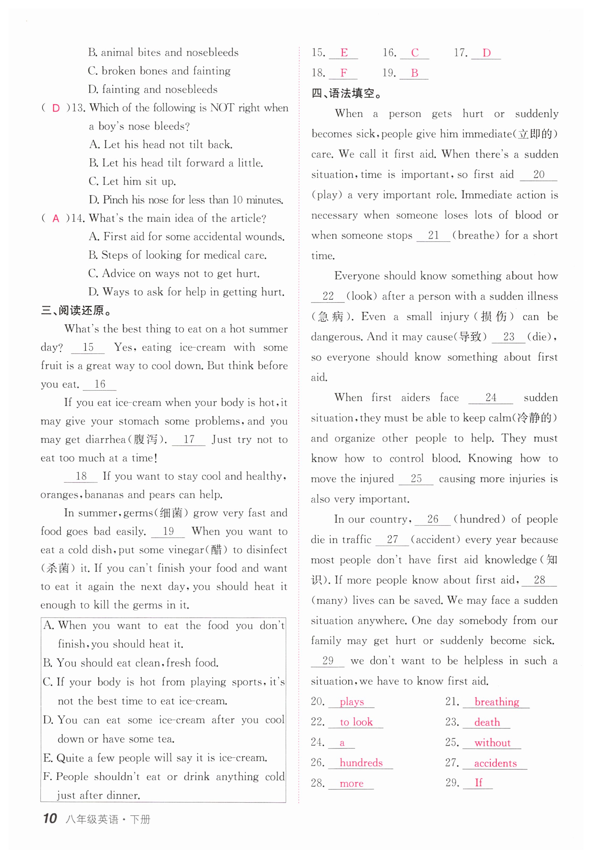 注:目前有些书本章节名称可能整理的还不是很完善,但都是按照顺序排列的,请同学们按照顺序仔细查找。练习册 2023年名师学案八年级英语下册人教版襄阳专版 答案主要是用来给同学们做完题方便对答案用的,请勿直接抄袭。