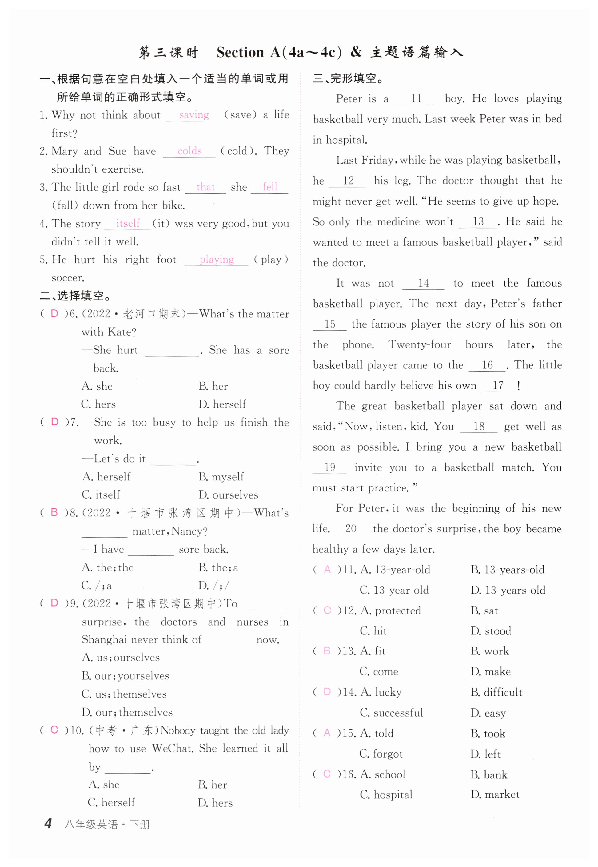 注:目前有些书本章节名称可能整理的还不是很完善,但都是按照顺序排列的,请同学们按照顺序仔细查找。练习册 2023年名师学案八年级英语下册人教版襄阳专版 答案主要是用来给同学们做完题方便对答案用的,请勿直接抄袭。
