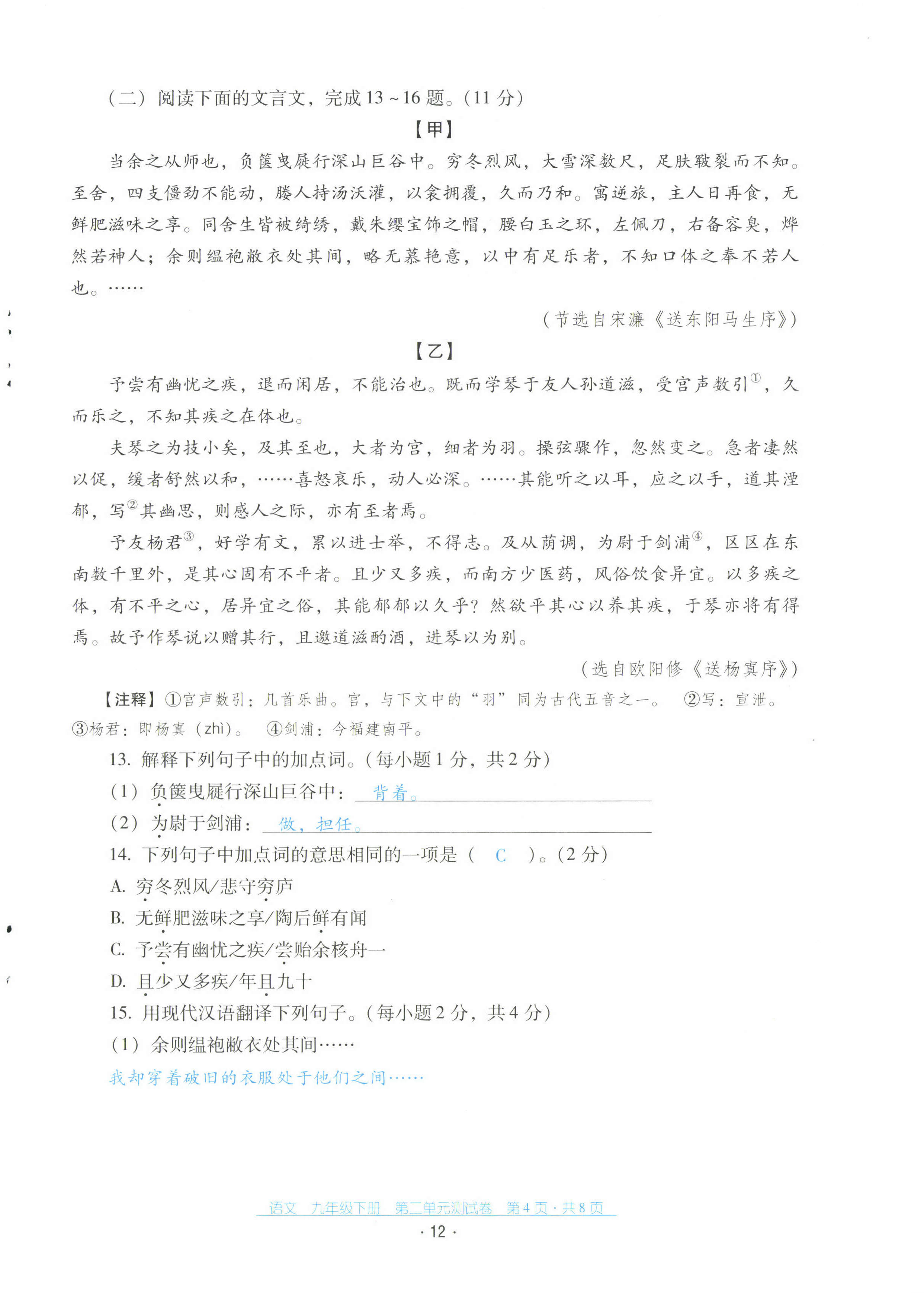 2023年云南省标准教辅优佳学案配套测试卷九年级语文下册人教版