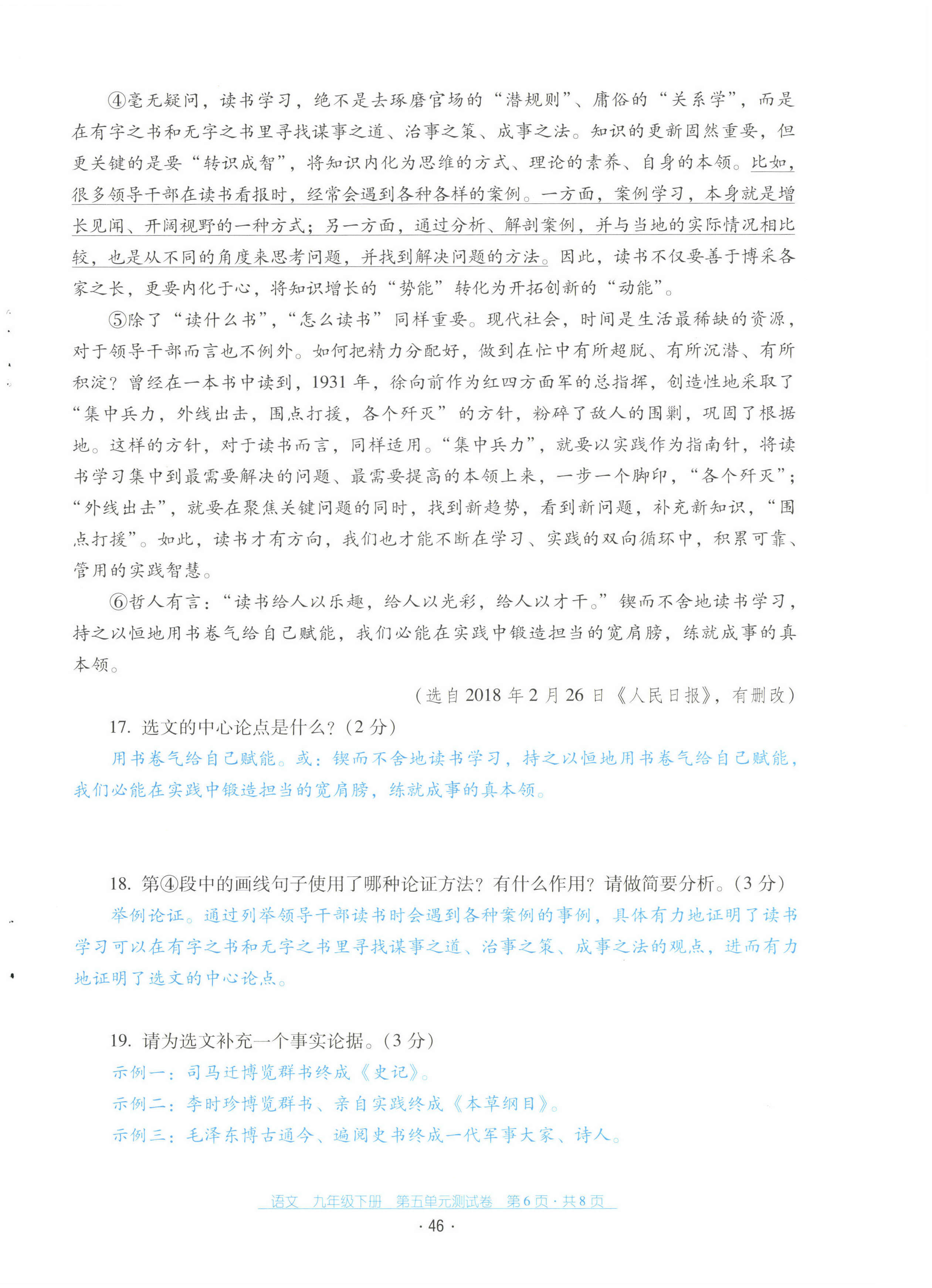 2023年云南省标准教辅优佳学案配套测试卷九年级语文下册人教版