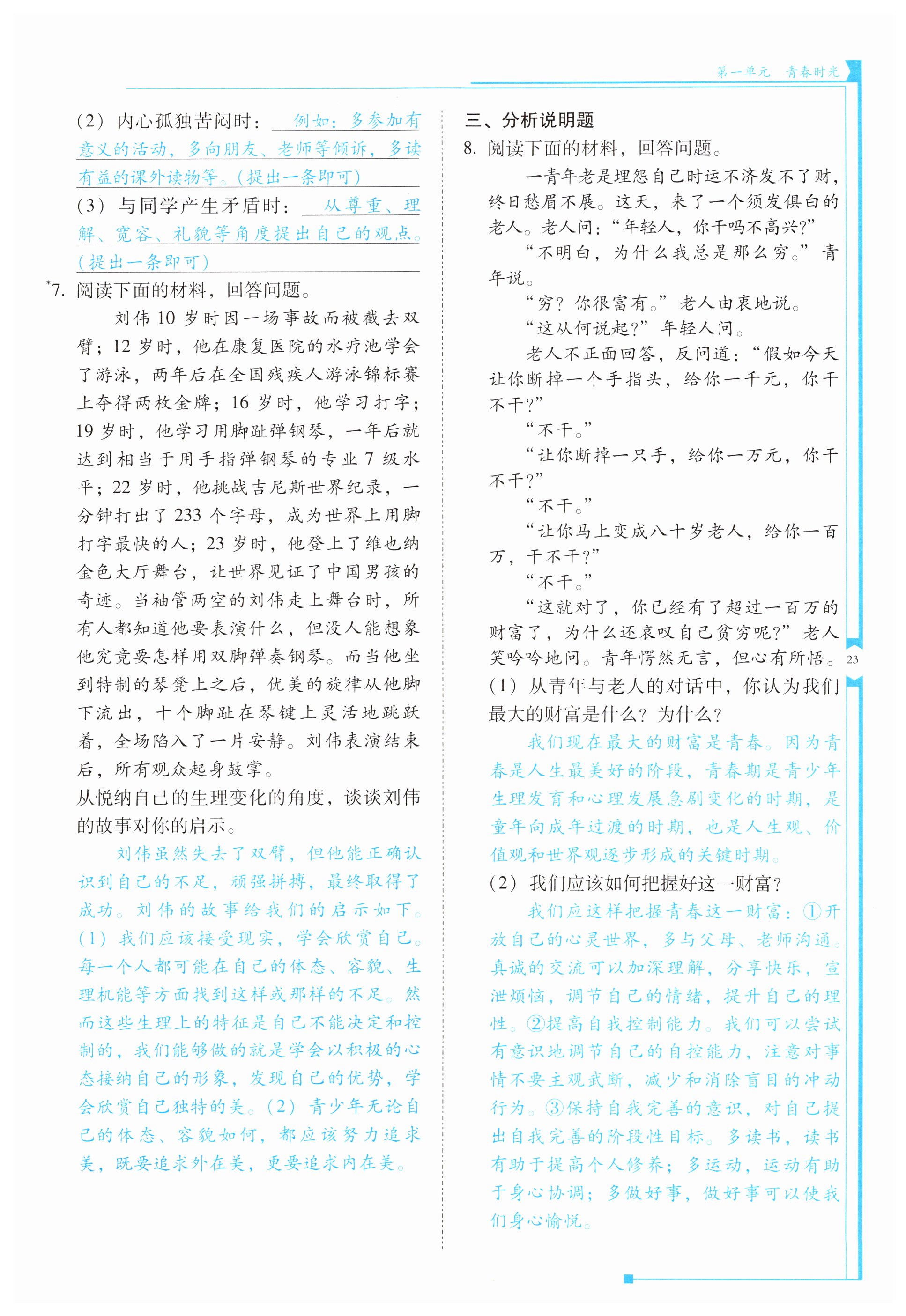 注:目前有些书本章节名称可能整理的还不是很完善,但都是按照顺序排列的,请同学们按照顺序仔细查找。练习册 2023年云南省标准教辅金榜学案七年级道德与法治下册人教版 答案主要是用来给同学们做完题方便对答案用的,请勿直接抄袭。