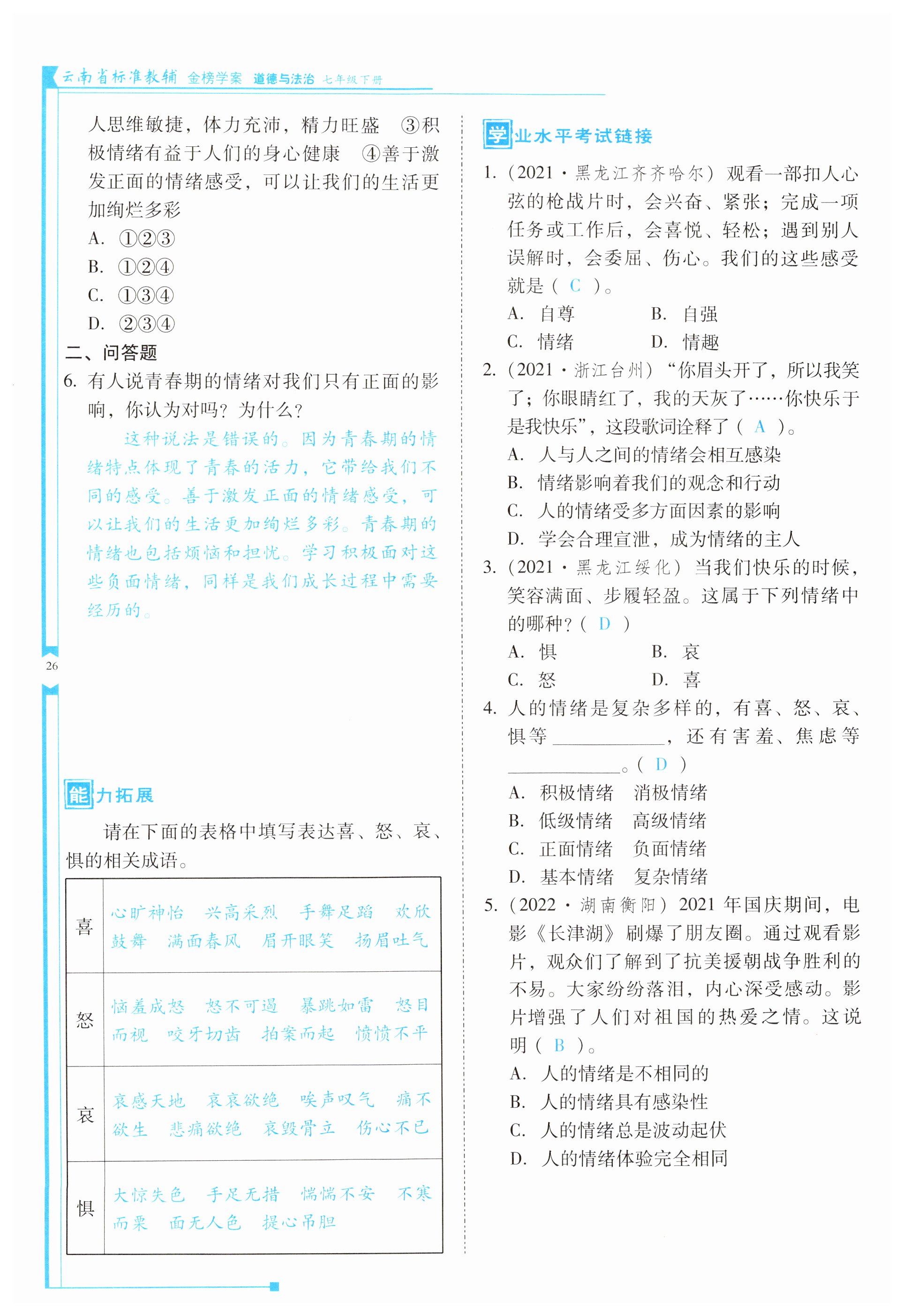2023年云南省标准教辅金榜学案七年级道德与法治下册人教版