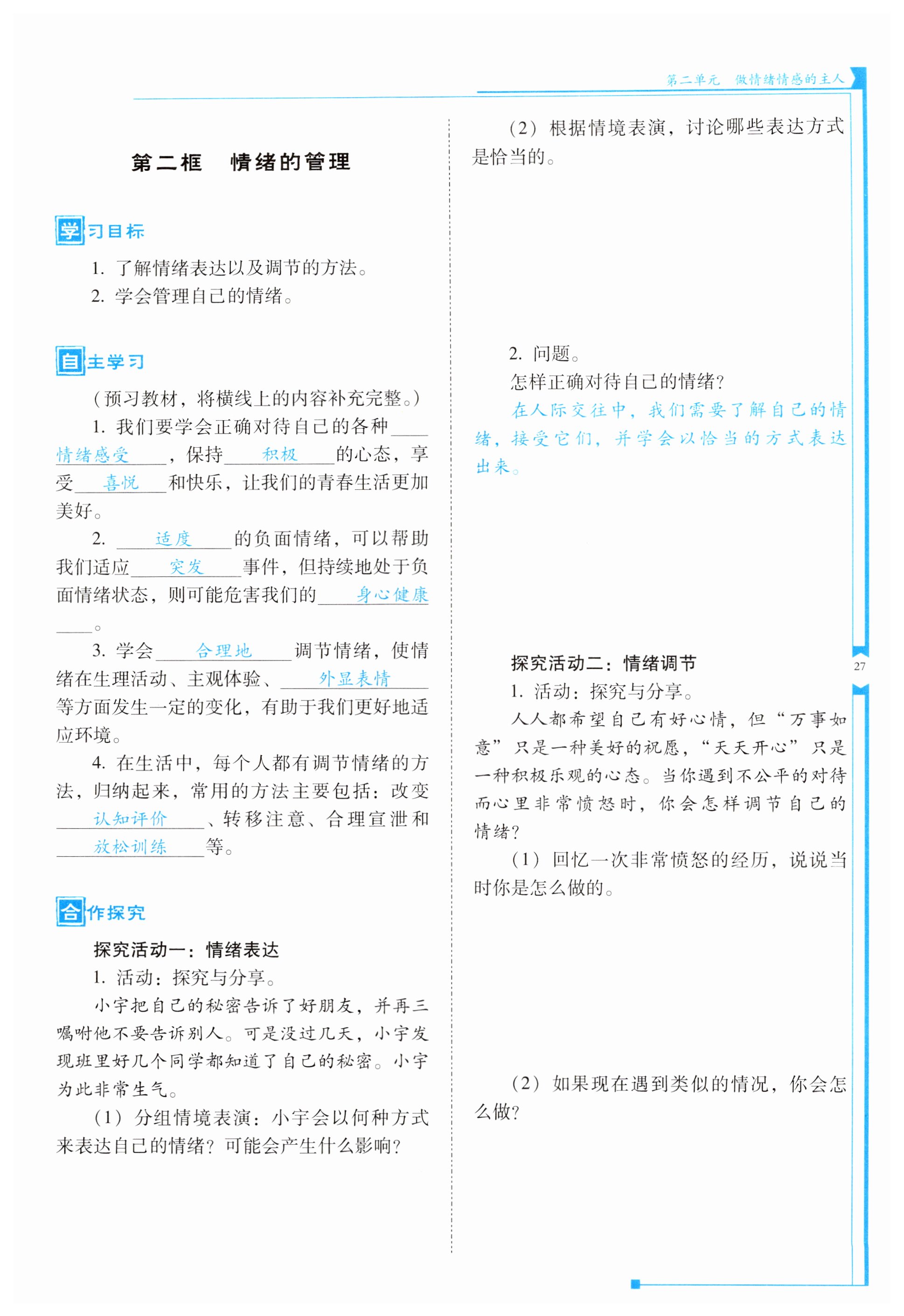 2023年云南省标准教辅金榜学案七年级道德与法治下册人教版