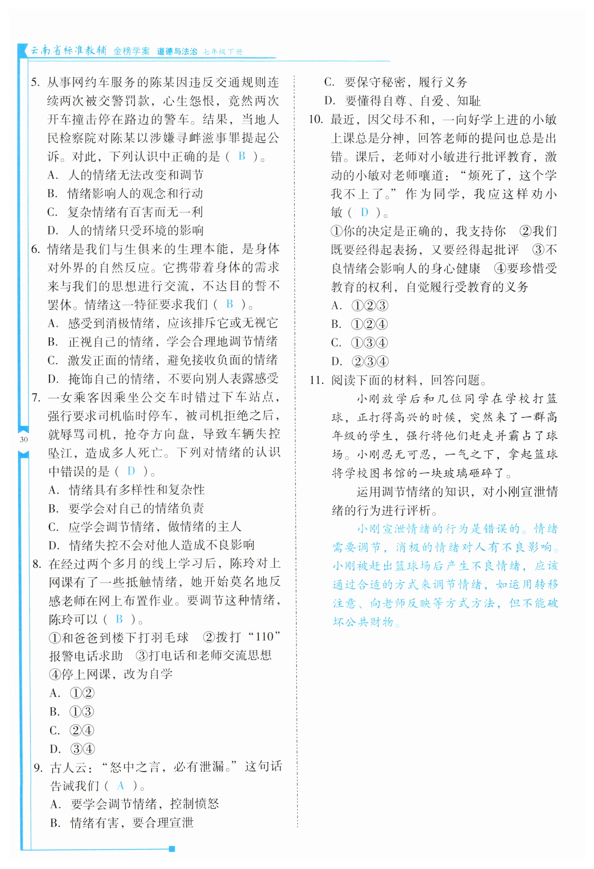 注:目前有些书本章节名称可能整理的还不是很完善,但都是按照顺序排列的,请同学们按照顺序仔细查找。练习册 2023年云南省标准教辅金榜学案七年级道德与法治下册人教版 答案主要是用来给同学们做完题方便对答案用的,请勿直接抄袭。