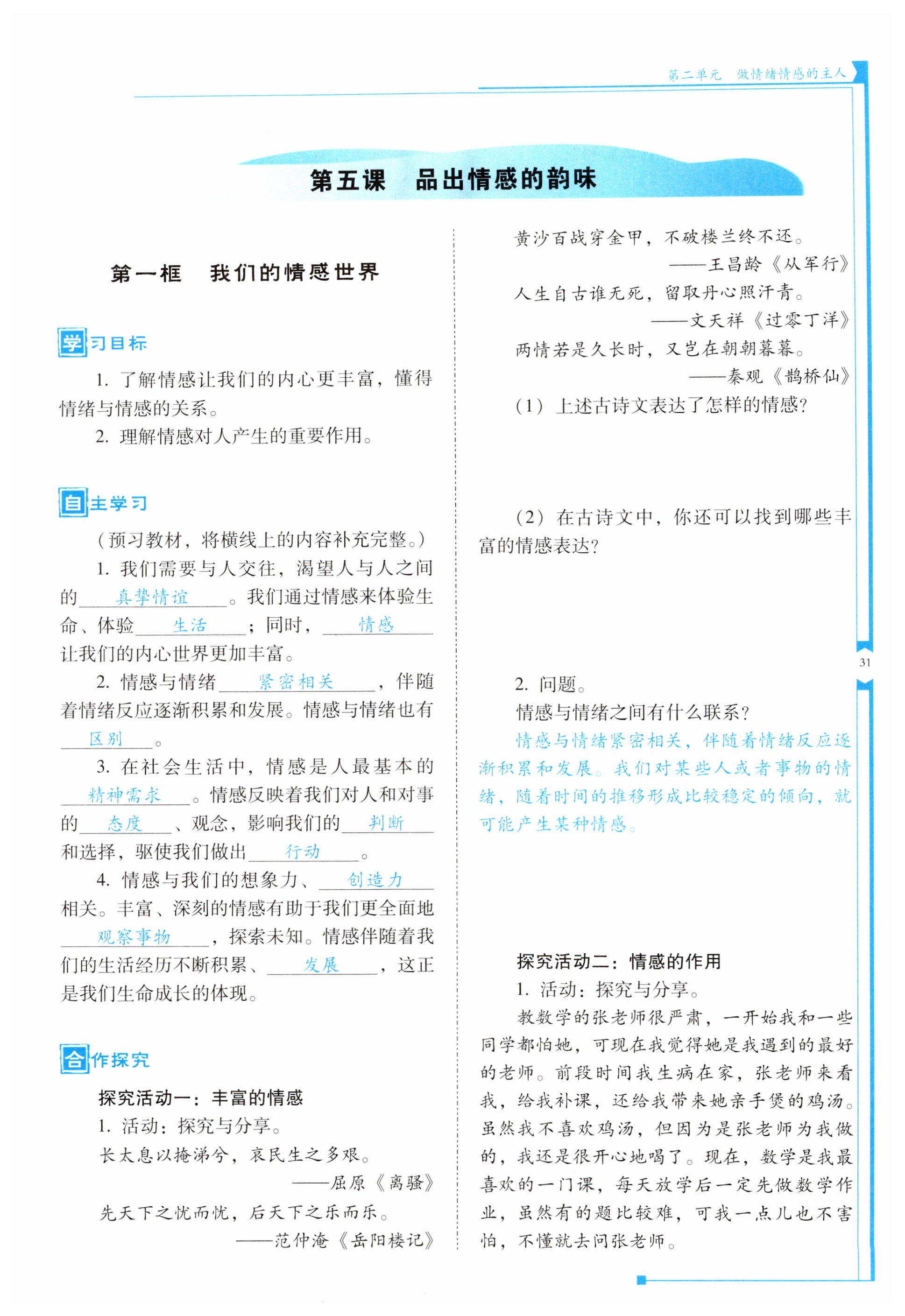 2023年云南省标准教辅金榜学案七年级道德与法治下册人教版