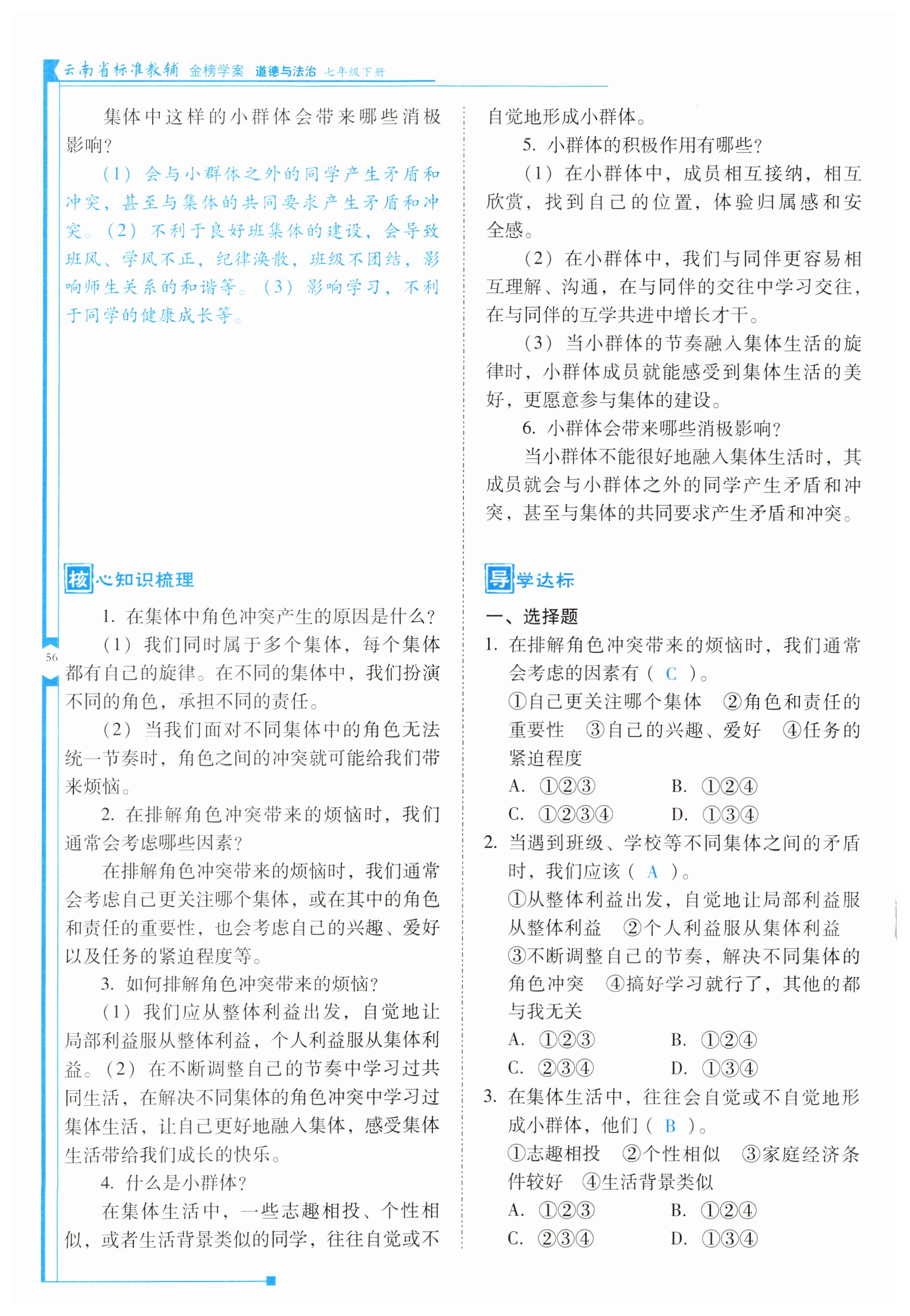 2023年云南省标准教辅金榜学案七年级道德与法治下册人教版