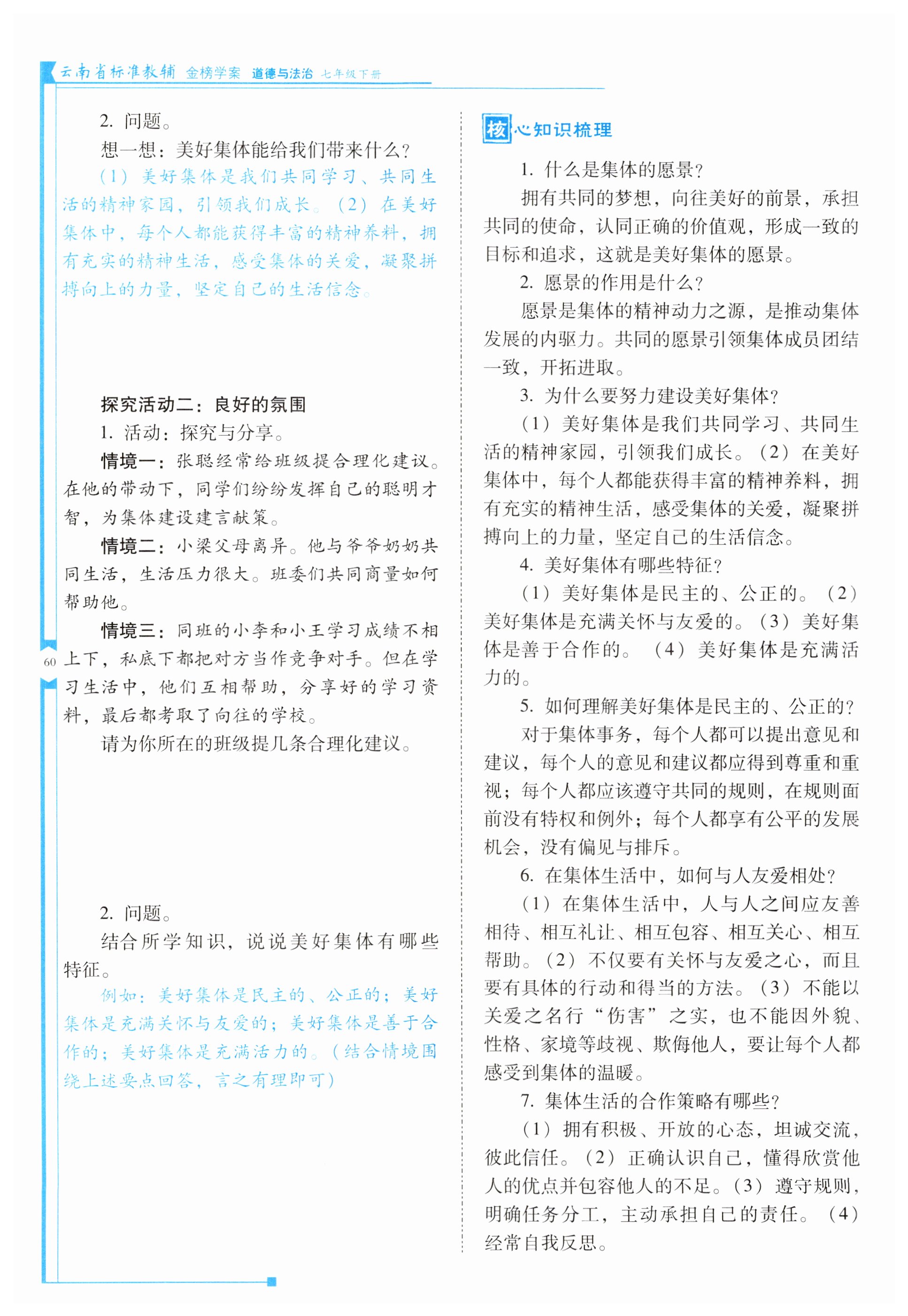 2023年云南省标准教辅金榜学案七年级道德与法治下册人教版
