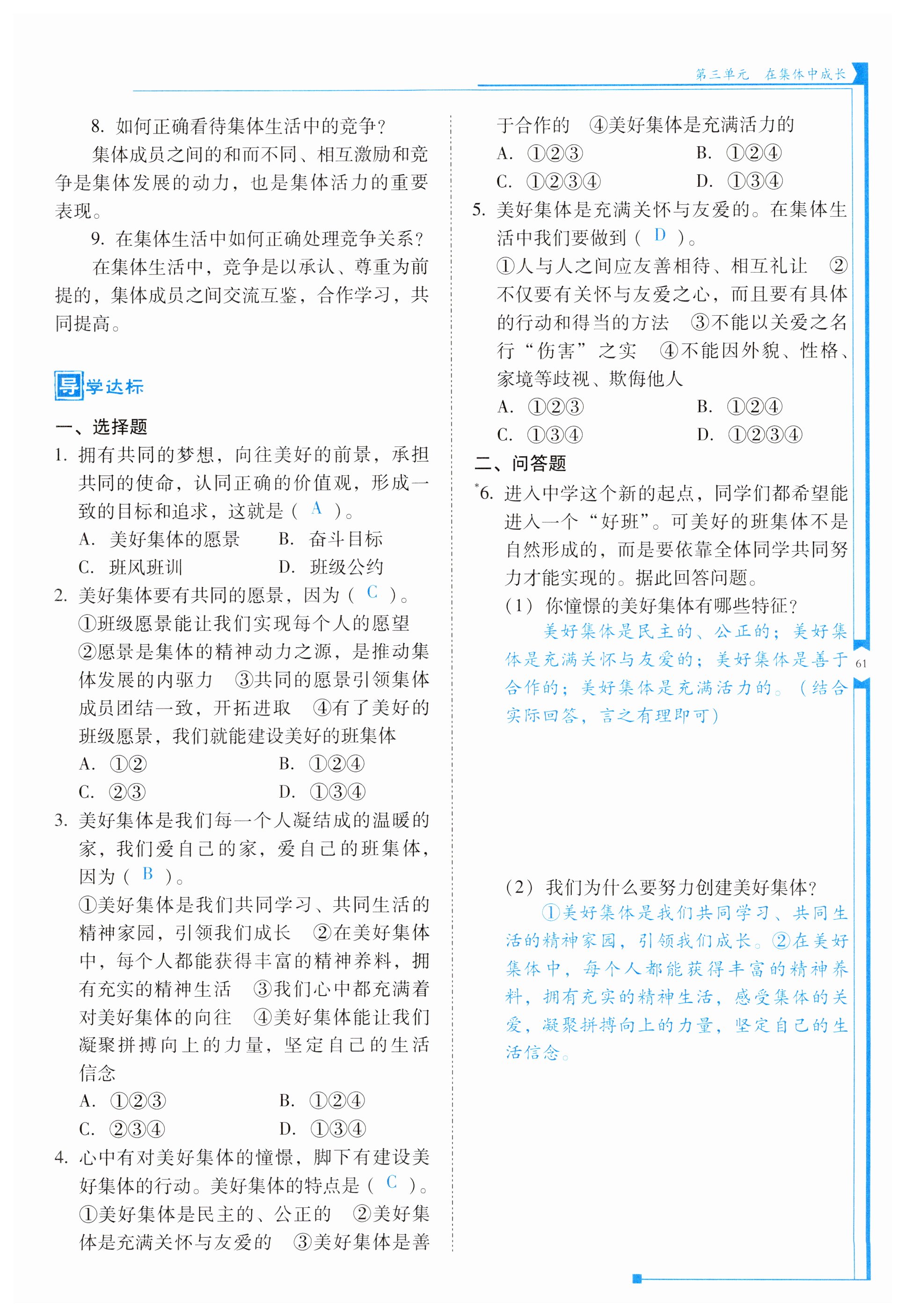 注:目前有些书本章节名称可能整理的还不是很完善,但都是按照顺序排列的,请同学们按照顺序仔细查找。练习册 2023年云南省标准教辅金榜学案七年级道德与法治下册人教版 答案主要是用来给同学们做完题方便对答案用的,请勿直接抄袭。