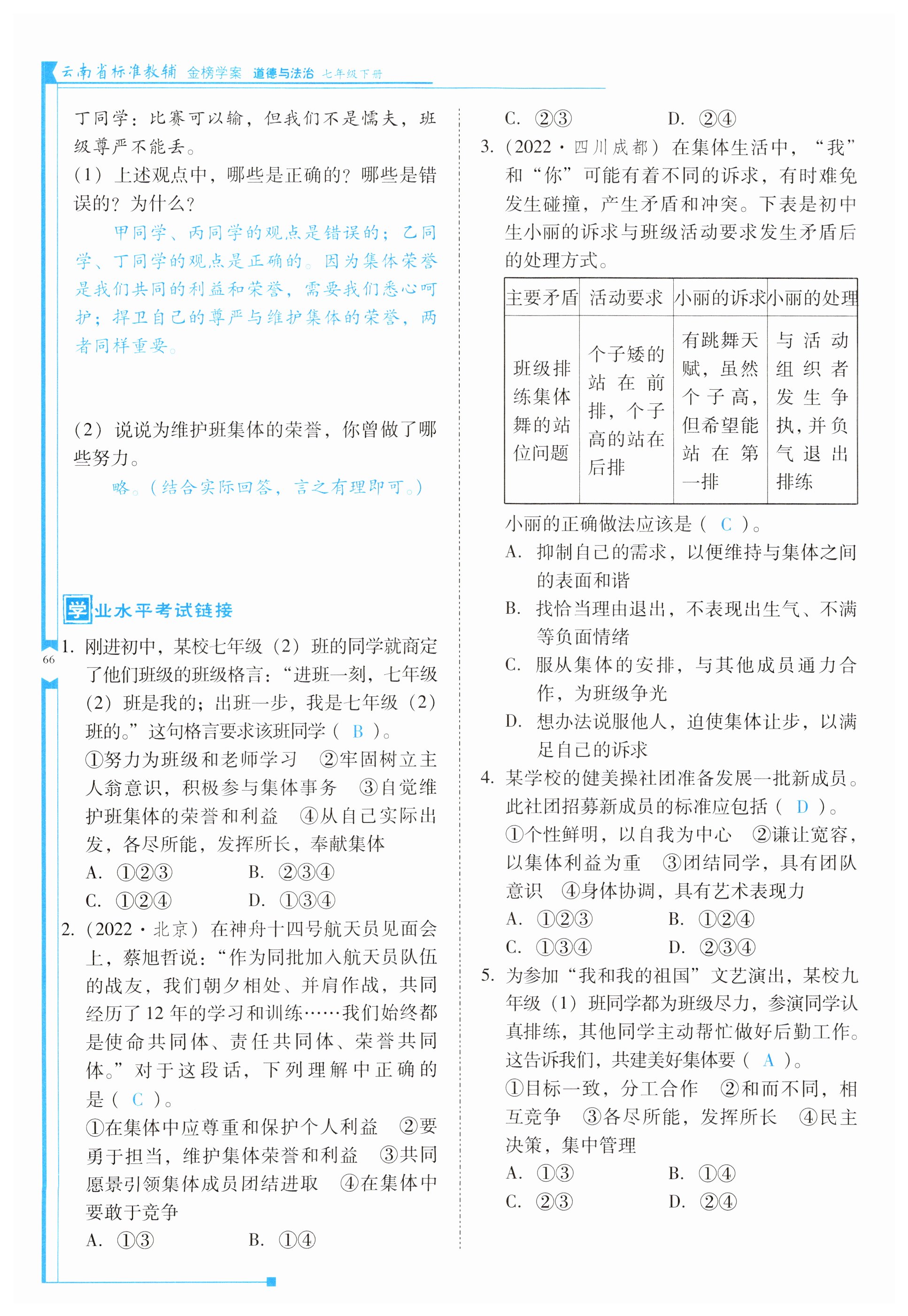 2023年云南省标准教辅金榜学案七年级道德与法治下册人教版
