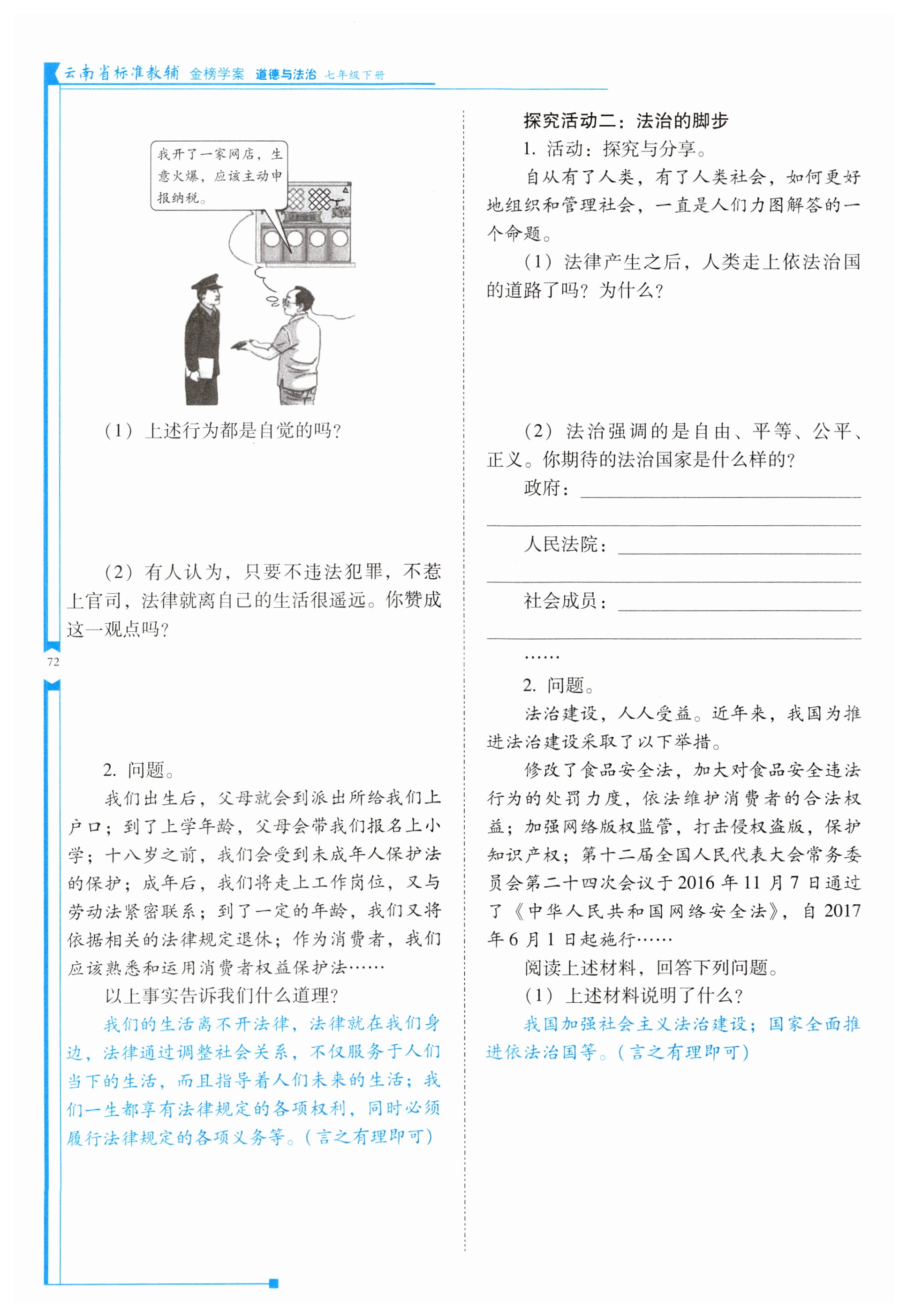 注:目前有些书本章节名称可能整理的还不是很完善,但都是按照顺序排列的,请同学们按照顺序仔细查找。练习册 2023年云南省标准教辅金榜学案七年级道德与法治下册人教版 答案主要是用来给同学们做完题方便对答案用的,请勿直接抄袭。