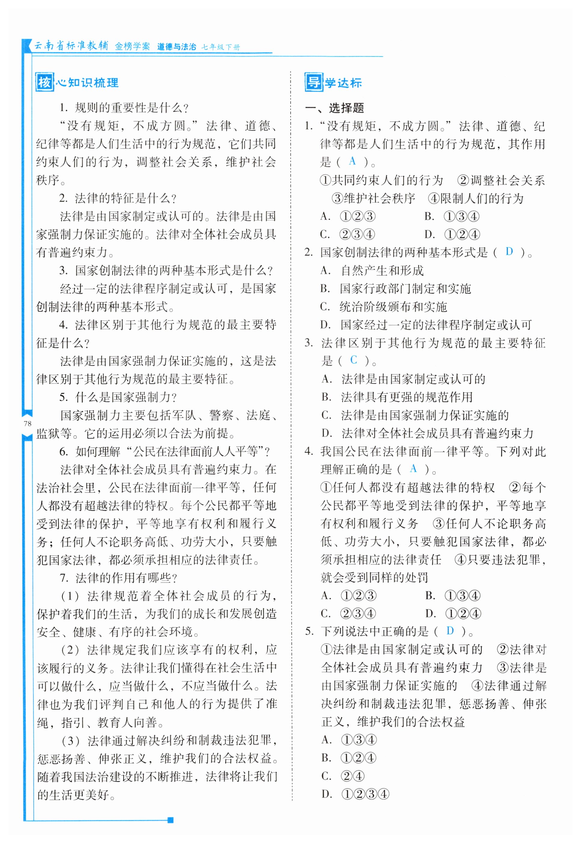 2023年云南省标准教辅金榜学案七年级道德与法治下册人教版