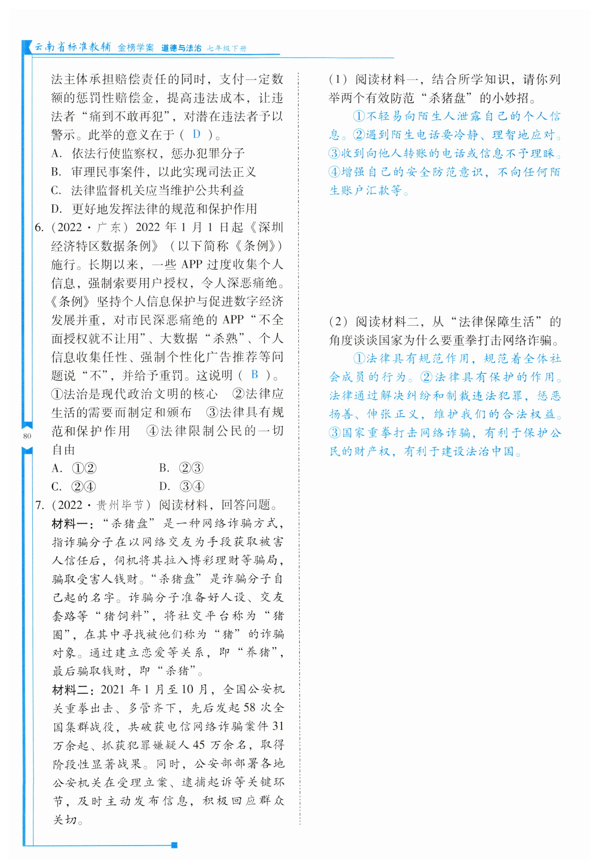 注:目前有些书本章节名称可能整理的还不是很完善,但都是按照顺序排列的,请同学们按照顺序仔细查找。练习册 2023年云南省标准教辅金榜学案七年级道德与法治下册人教版 答案主要是用来给同学们做完题方便对答案用的,请勿直接抄袭。
