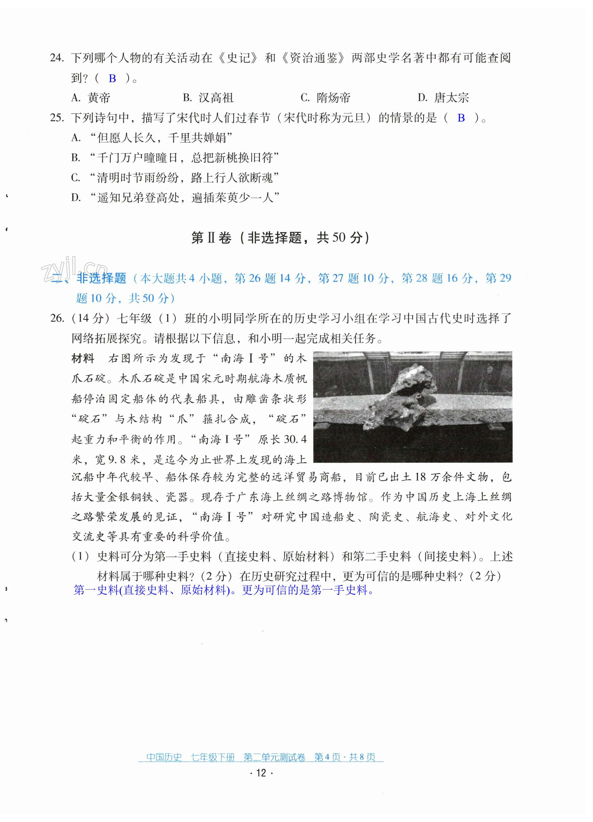 注:目前有些书本章节名称可能整理的还不是很完善,但都是按照顺序排列的,请同学们按照顺序仔细查找。练习册 2023年云南省标准教辅优佳学案配套测试卷七年级历史下册人教版 答案主要是用来给同学们做完题方便对答案用的,请勿直接抄袭。