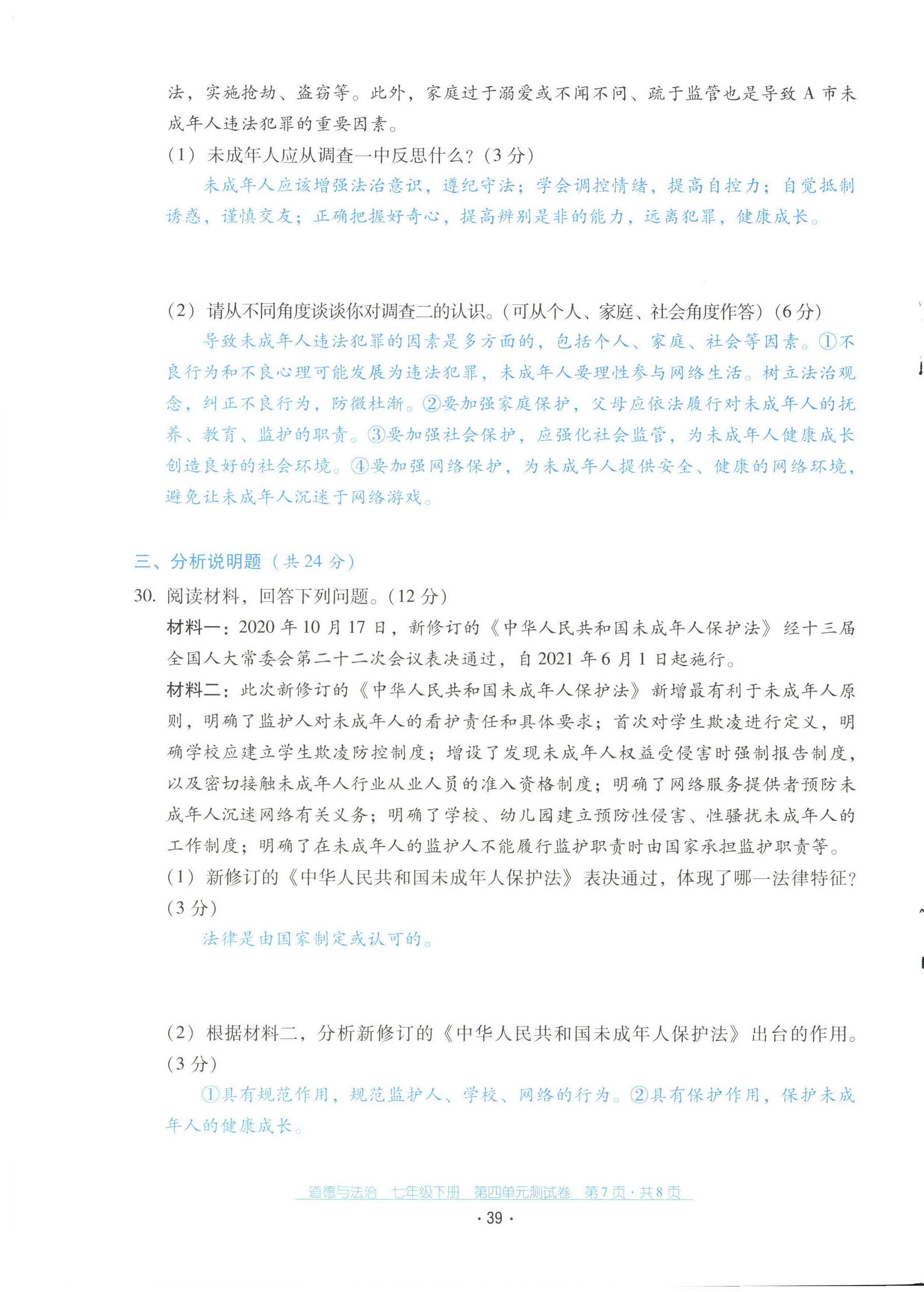 注:目前有些书本章节名称可能整理的还不是很完善,但都是按照顺序排列的,请同学们按照顺序仔细查找。练习册 2023年云南省标准教辅金榜学案配套测试卷七年级道德与法治下册人教版 答案主要是用来给同学们做完题方便对答案用的,请勿直接抄袭。