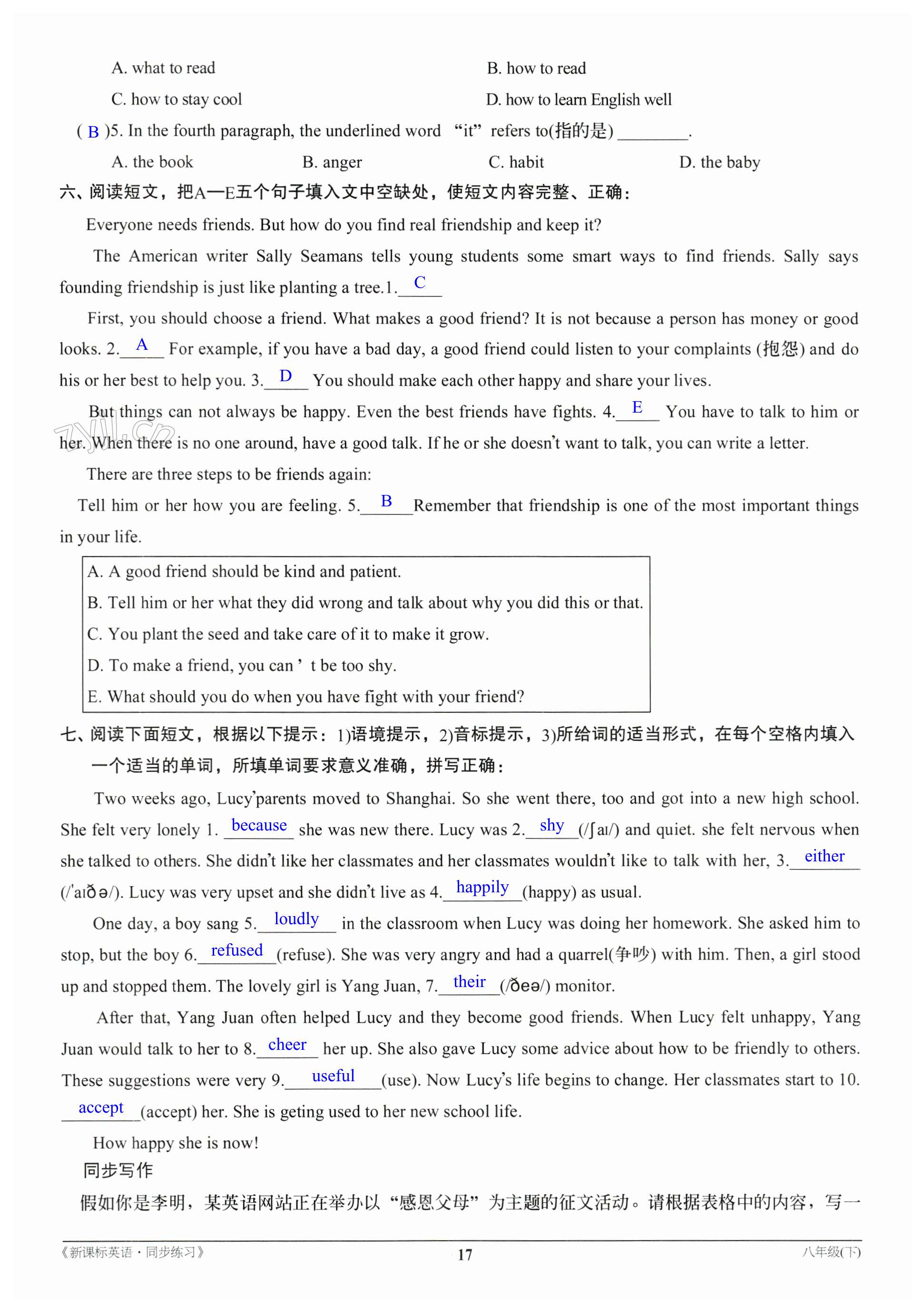注:目前有些书本章节名称可能整理的还不是很完善,但都是按照顺序排列的,请同学们按照顺序仔细查找。练习册 2023年新课标英语同步练习八年级下册仁爱版 答案主要是用来给同学们做完题方便对答案用的,请勿直接抄袭。