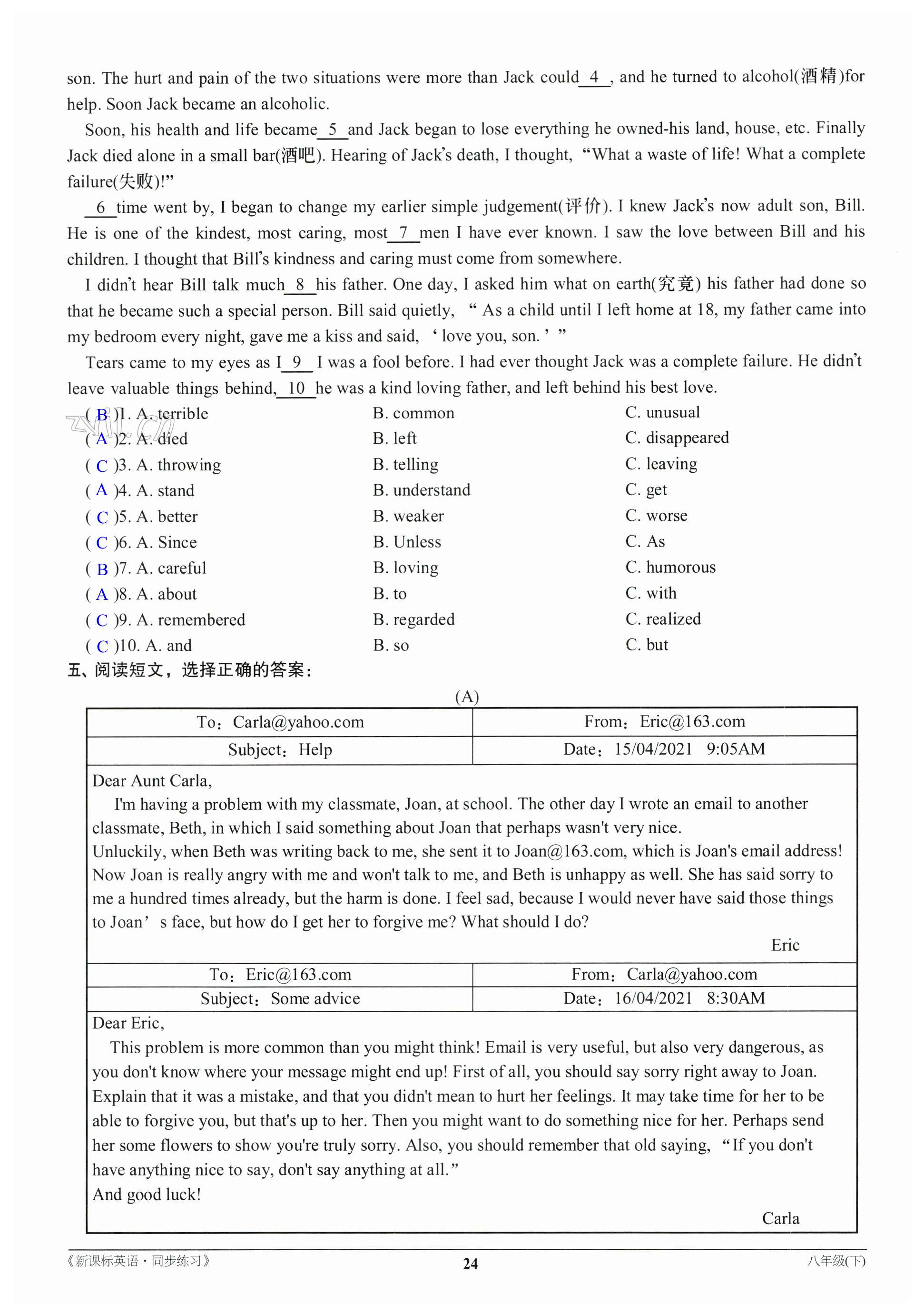 注:目前有些书本章节名称可能整理的还不是很完善,但都是按照顺序排列的,请同学们按照顺序仔细查找。练习册 2023年新课标英语同步练习八年级下册仁爱版 答案主要是用来给同学们做完题方便对答案用的,请勿直接抄袭。