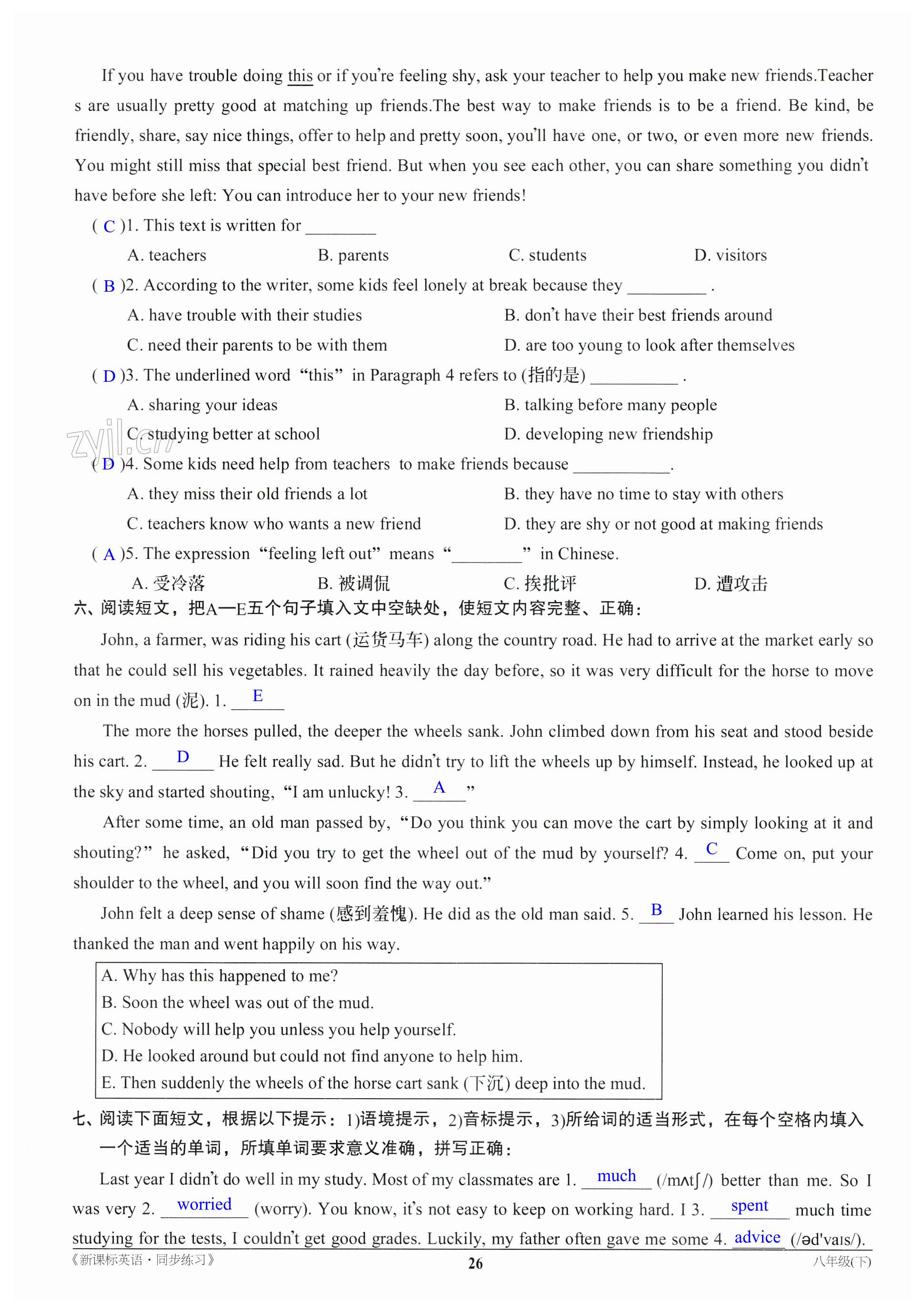 注:目前有些书本章节名称可能整理的还不是很完善,但都是按照顺序排列的,请同学们按照顺序仔细查找。练习册 2023年新课标英语同步练习八年级下册仁爱版 答案主要是用来给同学们做完题方便对答案用的,请勿直接抄袭。